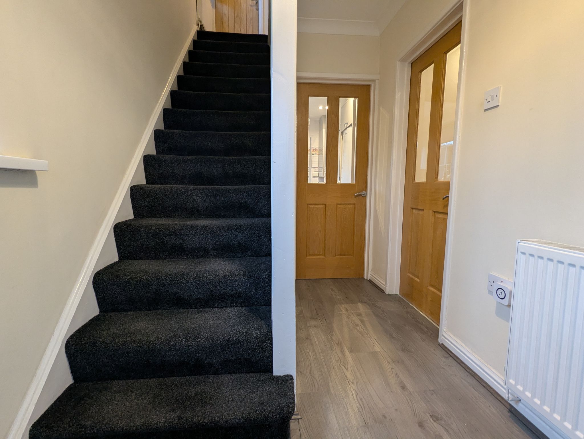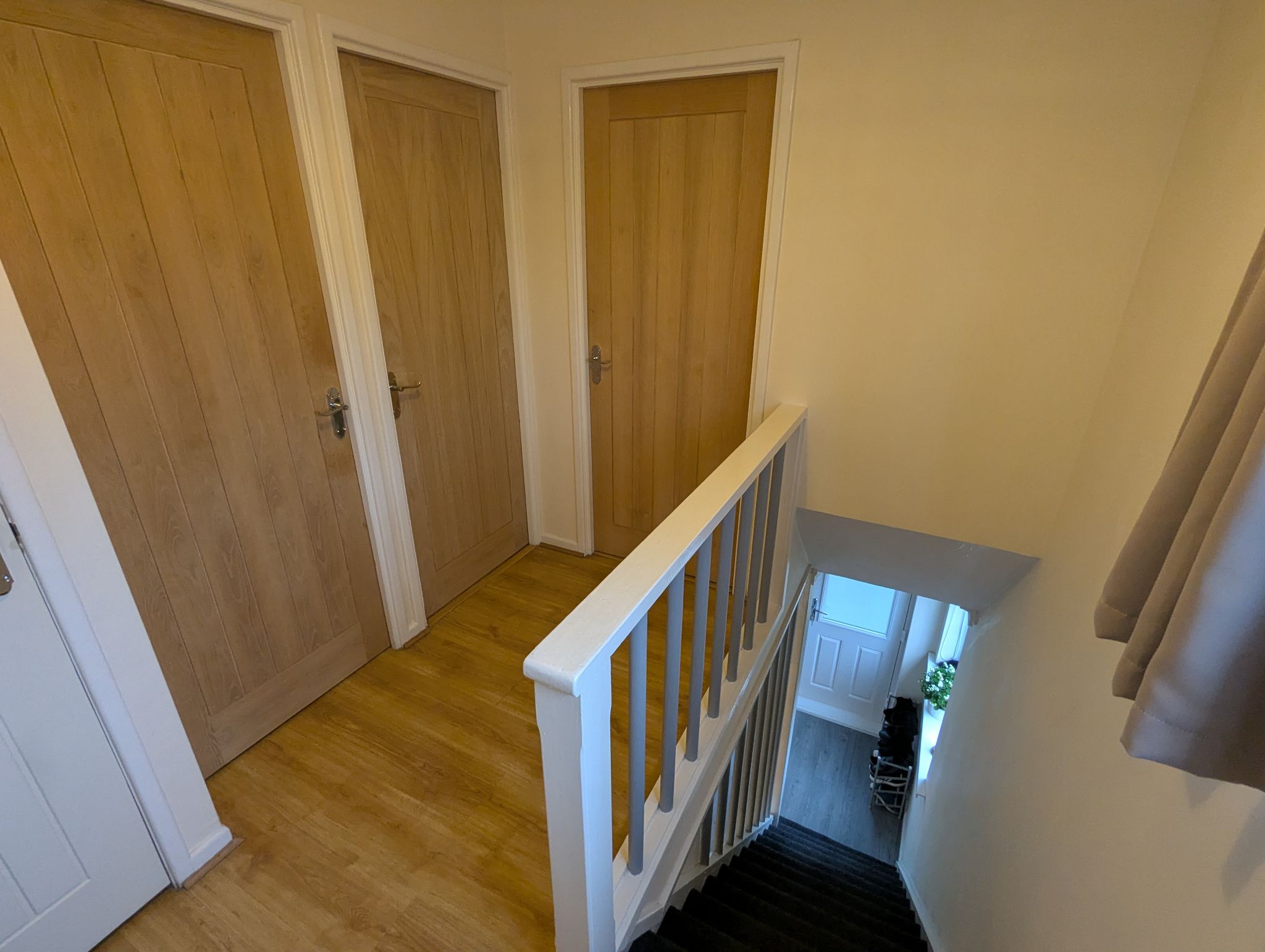 First Floor Landing - Laminate flooring with a side-facing uPVC double glazed window. Access to 3 bedrooms, a shower room, built-in cupboard and loft hatch.