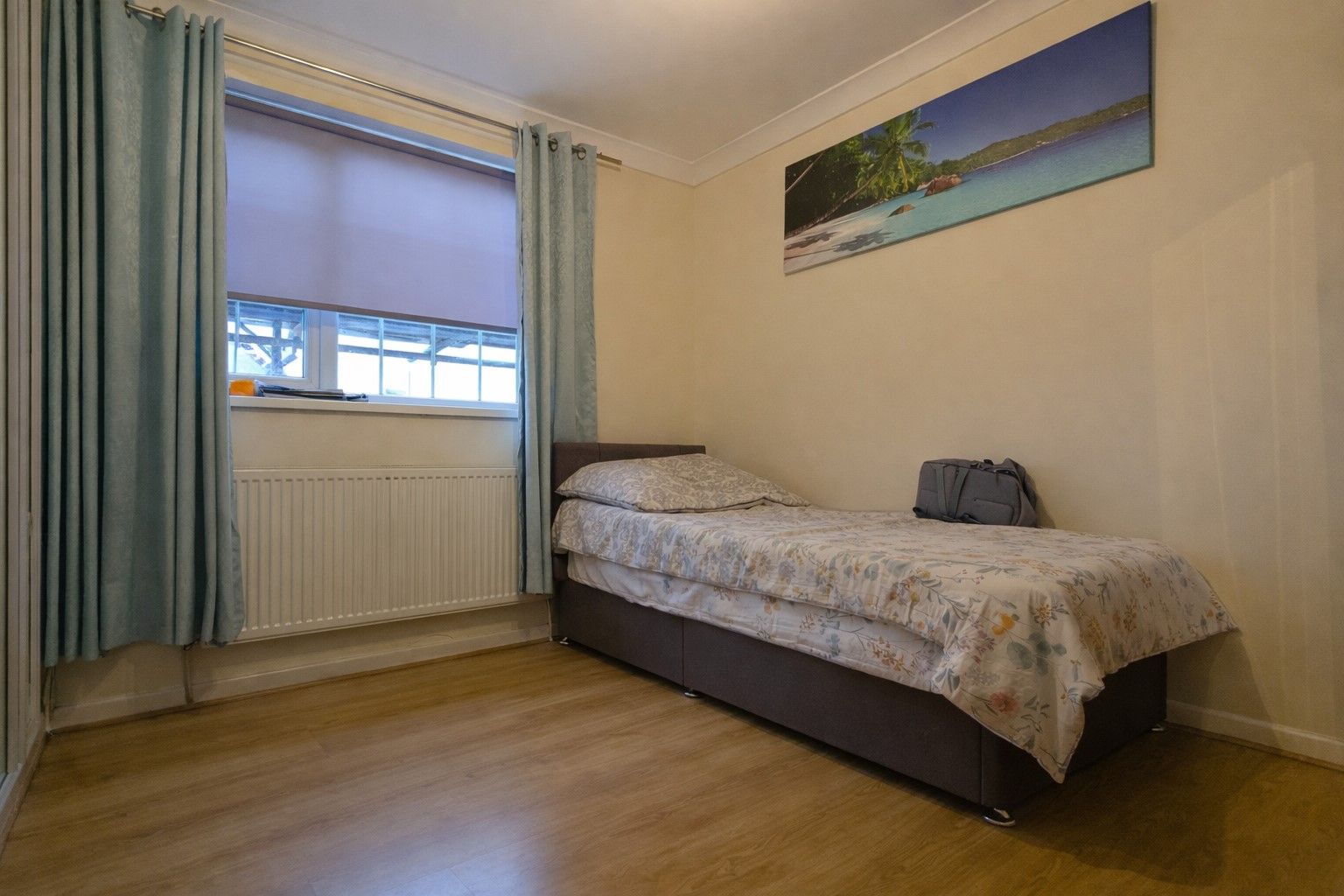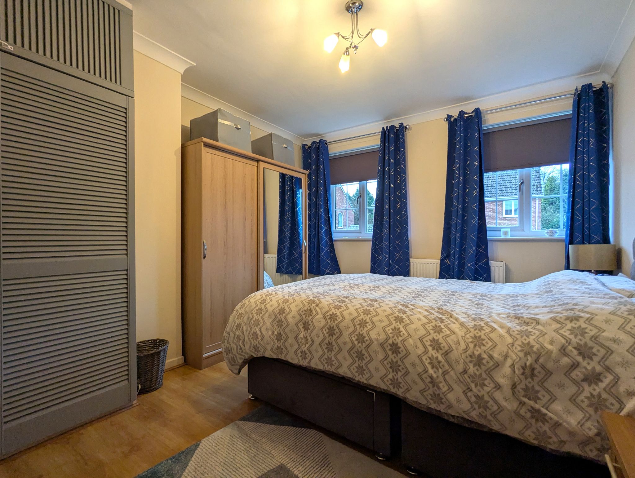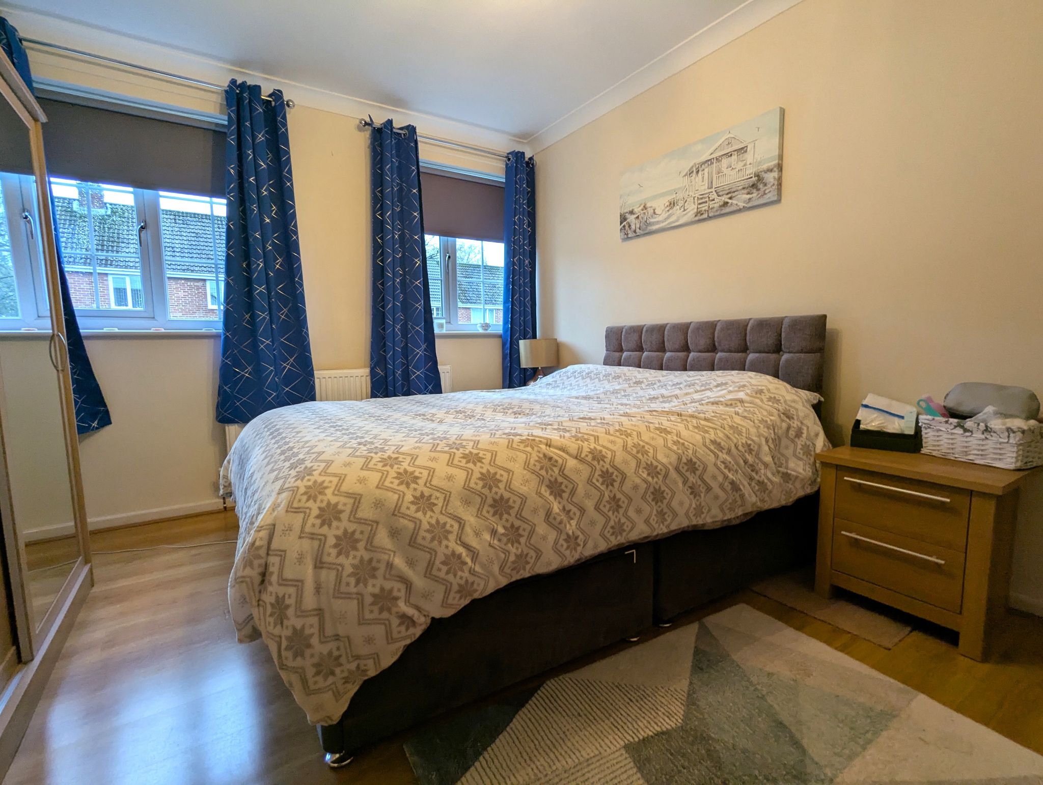 Bedroom One - 12'9 x 10'8 (3.93m x 3.29m) - Laminate flooring, 2 front-facing uPVC double glazed window, built-in cupboard and wall mounted radiator.