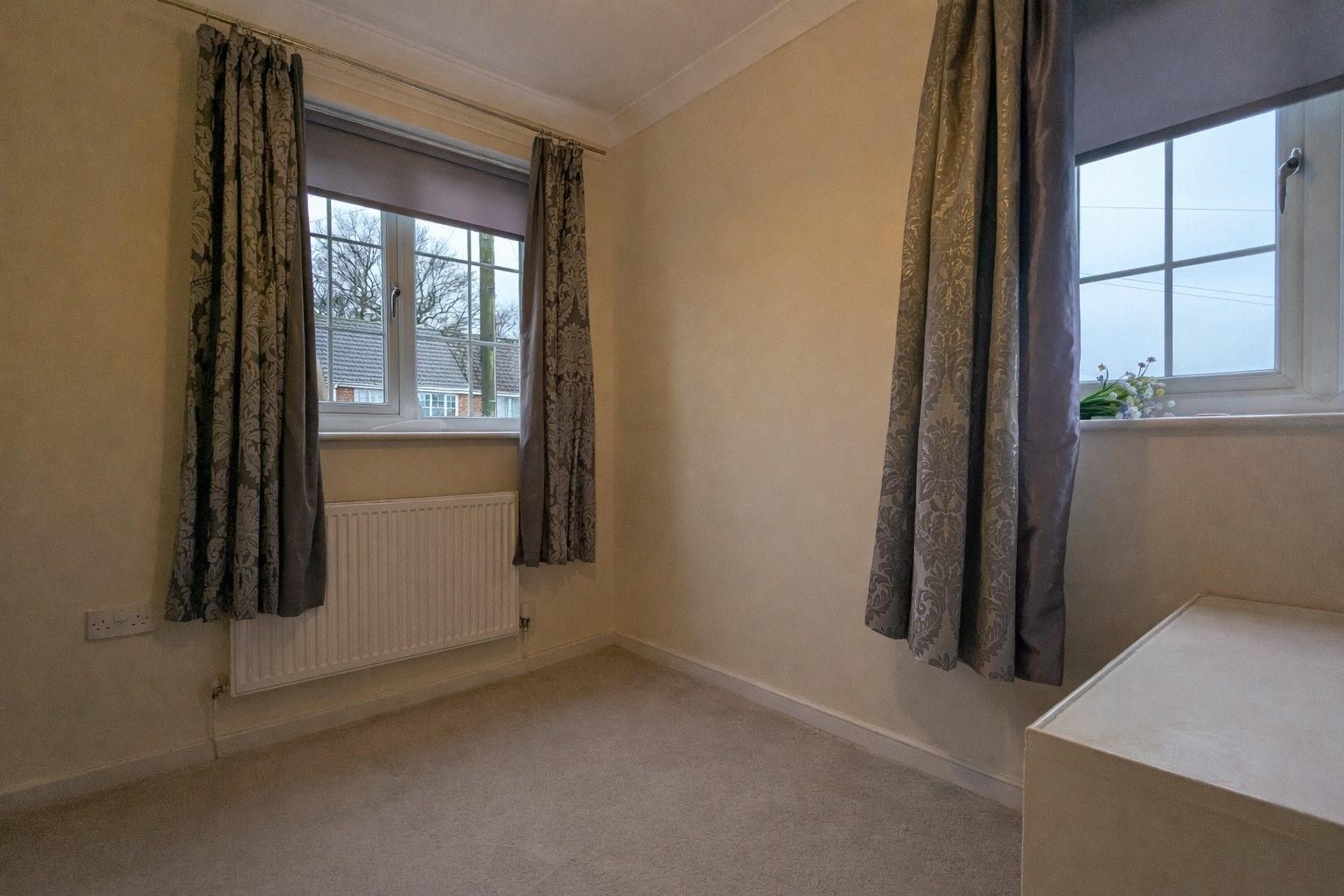 Bedroom Three - 10' x 6'8 (3.04m x 2.07m) - Carpeted along with front and side-facing uPVC double glazed windows and a wall mounted radiator.