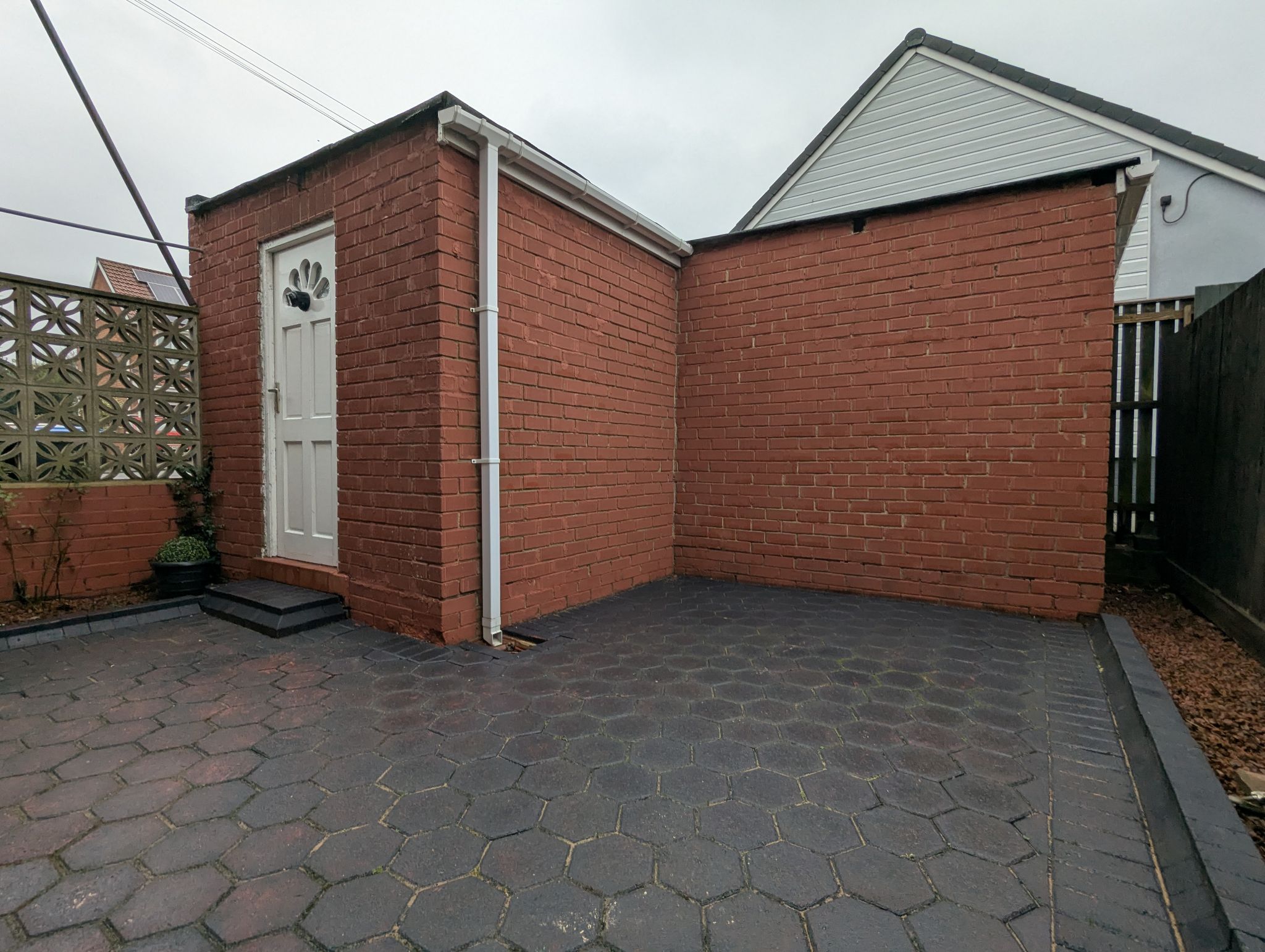 Exterior - Gardens to 3 sides of the house. The largest being to the left hand gable end running the full depth of the house. A block paved low maintenance garden to the rear with access to a recently re-plastered outhouse fitted with utility facilities. Large drive leading to a detached garage with an 'up and over' door.