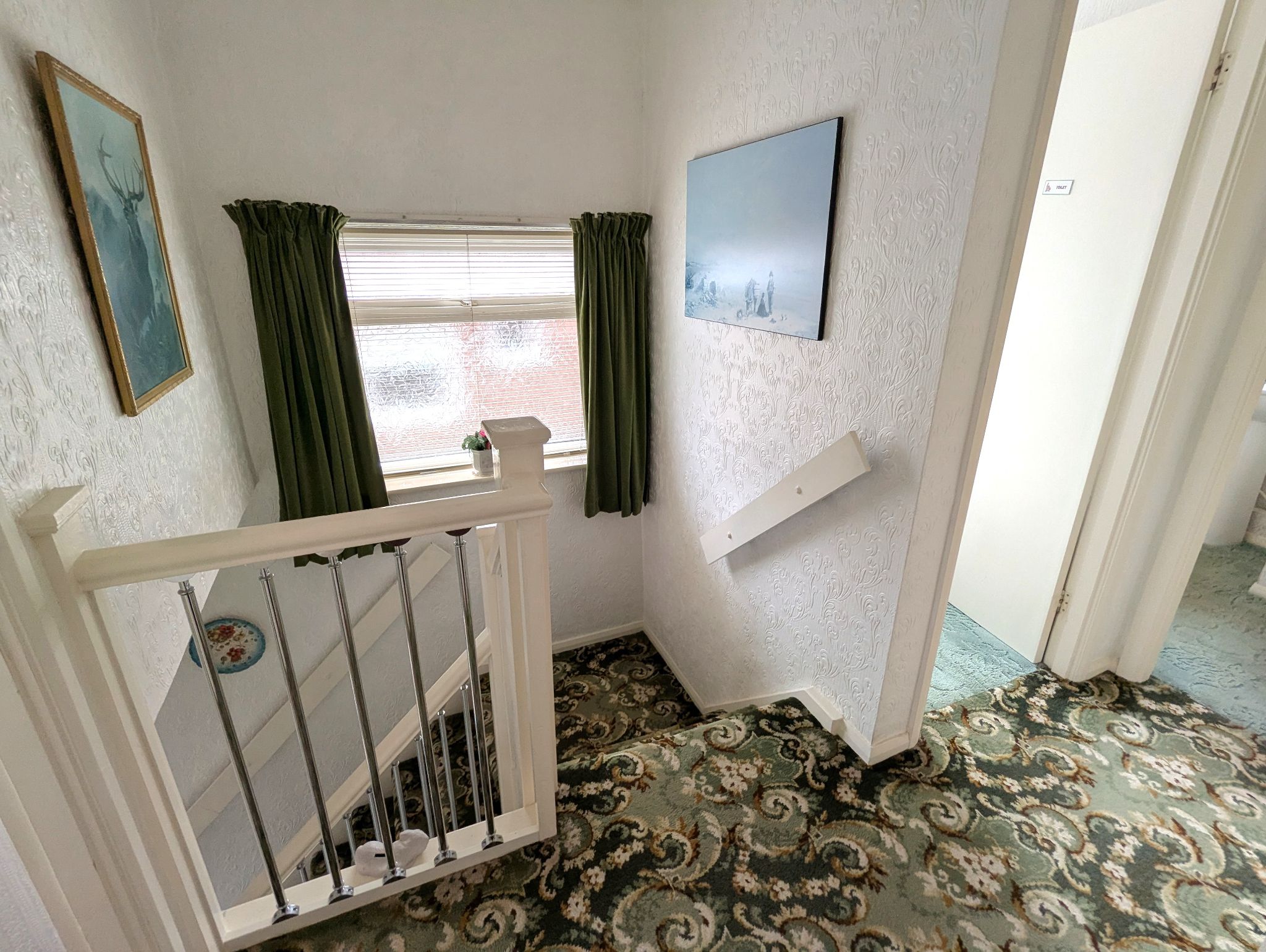 First Floor Landing - Carpeted landing with a side-facing UPVC double glazed window. Access to 3 bedrooms, bathroom, separate WC and loft hatch.