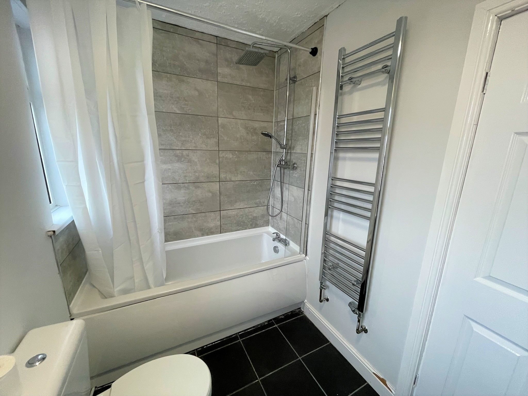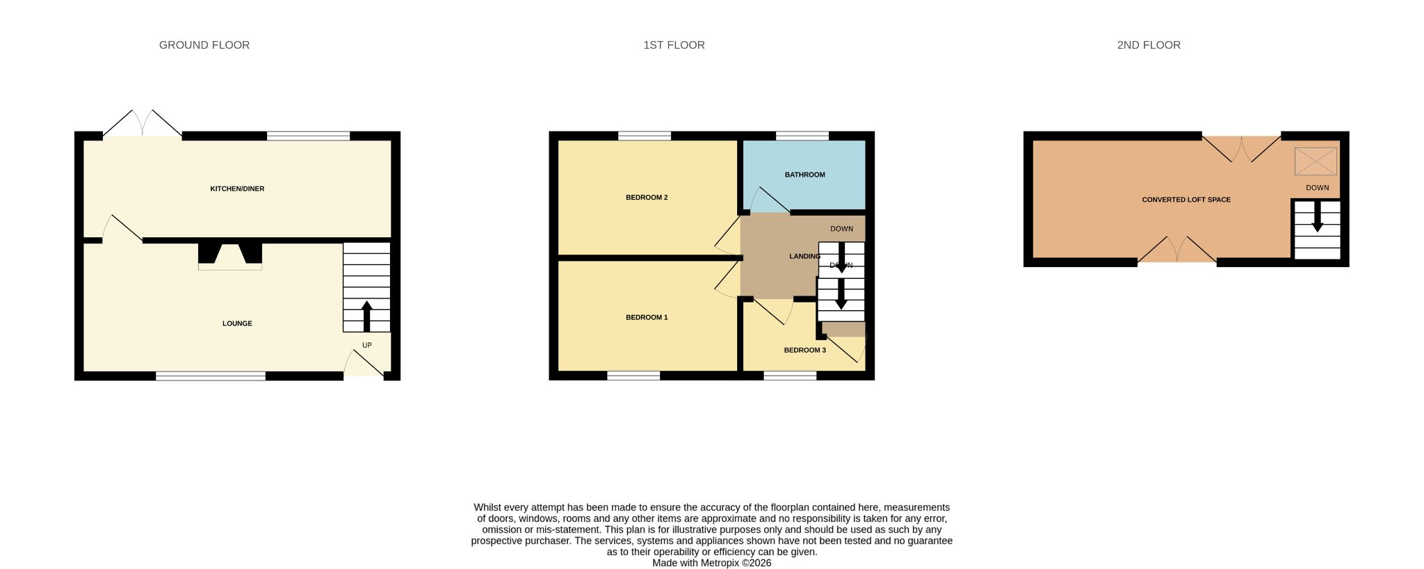 The ground floor of this property is open plan, which gives a real flow and allows natural light to flood in. The lounge section is a generous size and features a good number of power points with a feature fireplace with electric fire, the kitchen/dining area has been finished with white high gloss units with contrasting worktops, Gas hob with Electric Oven along with ample space for family dining table. The first floor comprises of a spacious master bedroom to the rear, a second good sized bedroom and third single bedroom with access to the loft room, with the chimney stack being removed. The modern family bathroom has been tastefully fitted with chrome bathroom fixtures such as rainfall shower, heated towel rail and chrome mixer taps.