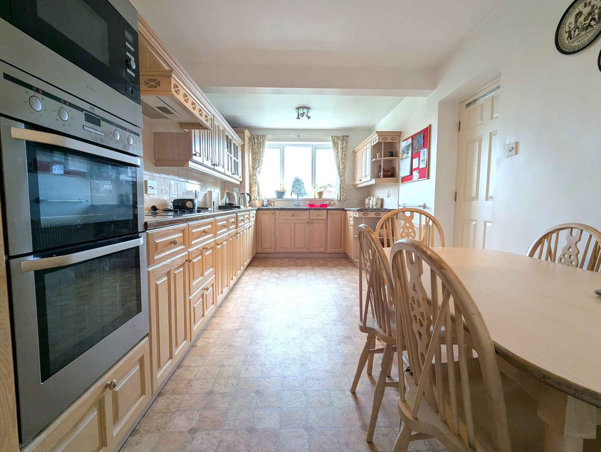 Kitchen/Breakfast Room - 20'6 x 8'7 (6.25m x 2.61m) - A spacious and long kitchen with breakfast area with vinyl flooring, offering an ample range of fitted kitchen units with work surfaces and tiled splashback. Integrated appliances include a twin electric oven and separate hob with an overhead extractor and microwave. Worcester Combination Boiler. Stainless steel one-and-a-half sink with mixer tap below a rear-facing UPVC double glazed window. Wall mounted radiator.