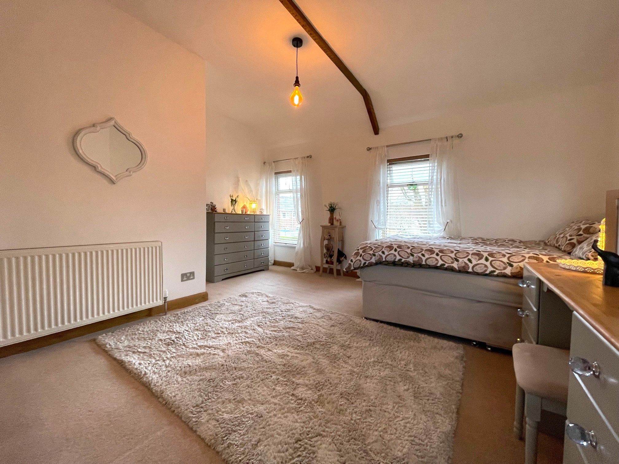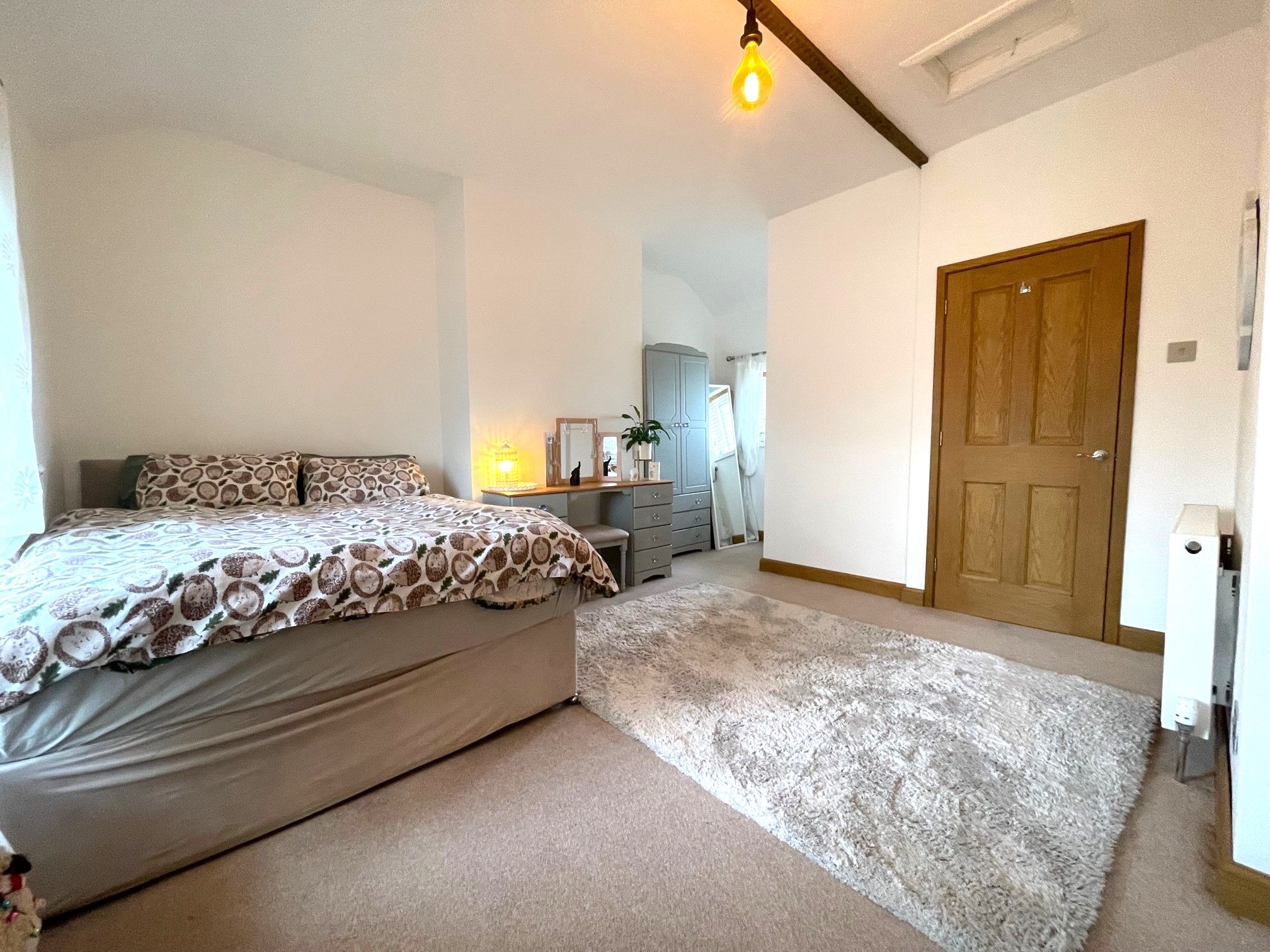 Bedroom One - 15'6 x 16' (4.77m x 4.89) - Formerly two bedrooms, this spacious and brightly decorated bedroom can be converted back into two separate bedrooms. Carpeted throughout with two front-facing and one rear-facing UPVC double glazed window. Storage cupboard and wall mounted radiator.