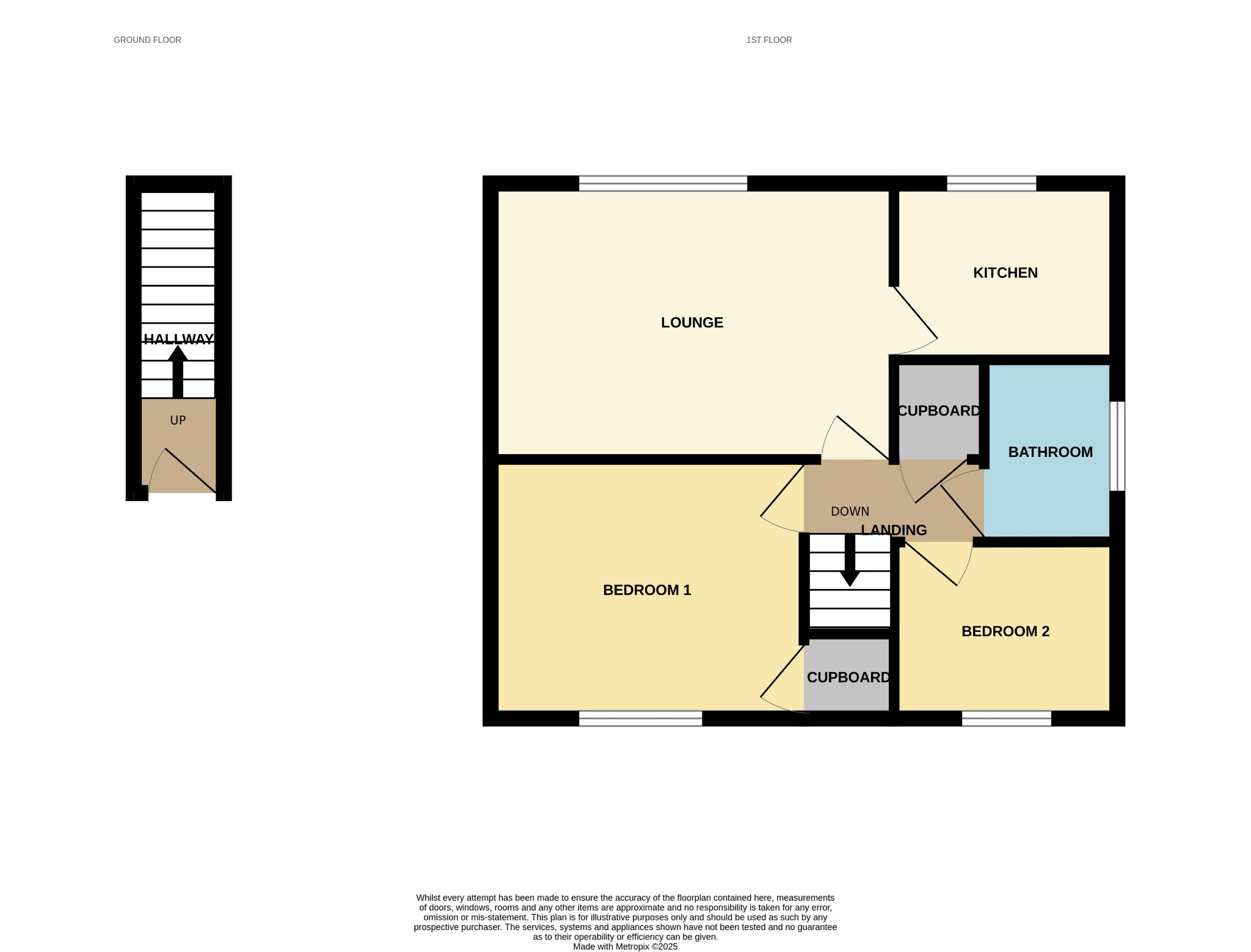 First Floor Landing - Carpeted landing with access to a lounge, 2 bedrooms, a bathroom and built-in cupboard. Wall mounted radiator.