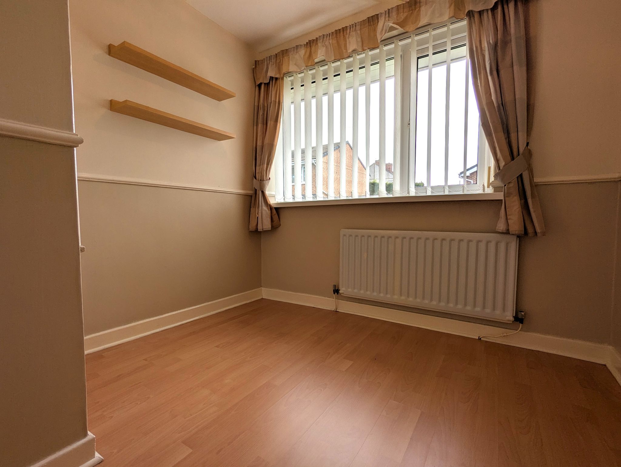 Bedroom Three - 8'2 x 7'6 (2.52m x 2.32m) - Laminate flooring, front-facing UPVC double glazed window, built-in cupboard and wall mounted radiator.