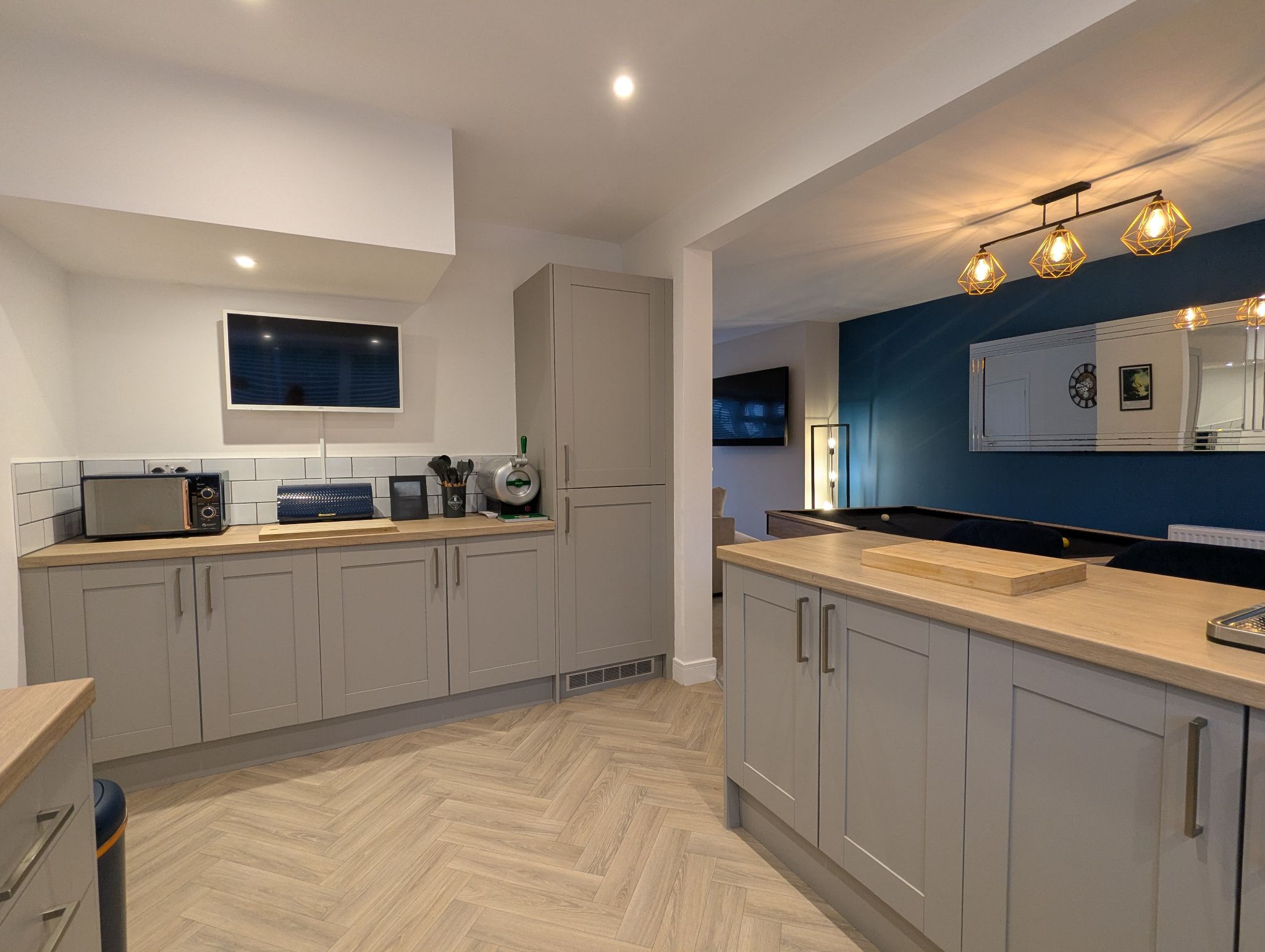 Access to the garage is also from the kitchen. With the added bonus of benefitting from an electric car charger and combination boiler, additional lights and power are also available.