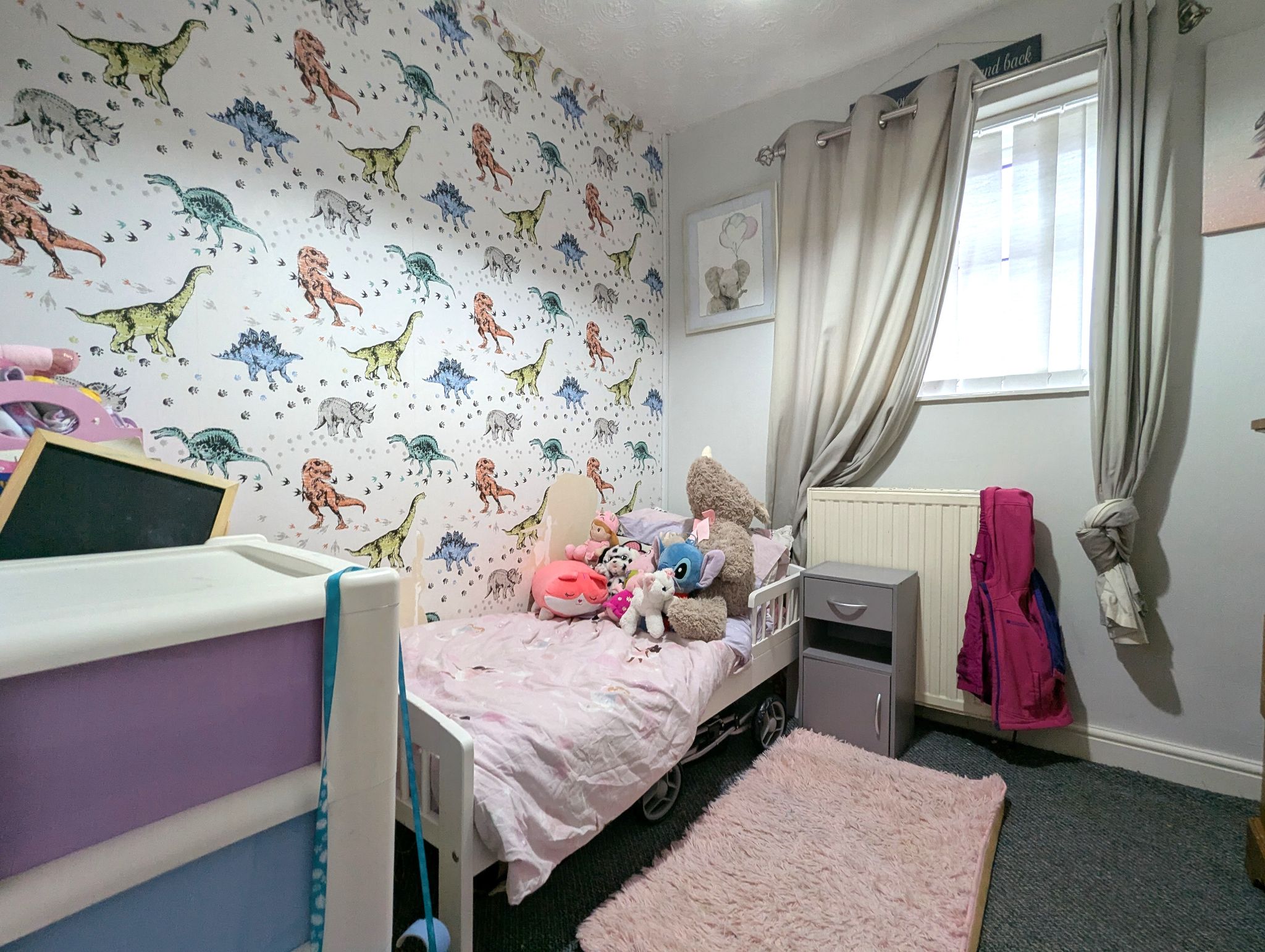 Bedroom 2 - 2.61m x 2.73m - featuring double glazed UPVC window to rear, radiator, pendant light fitting & carpeted flooring.