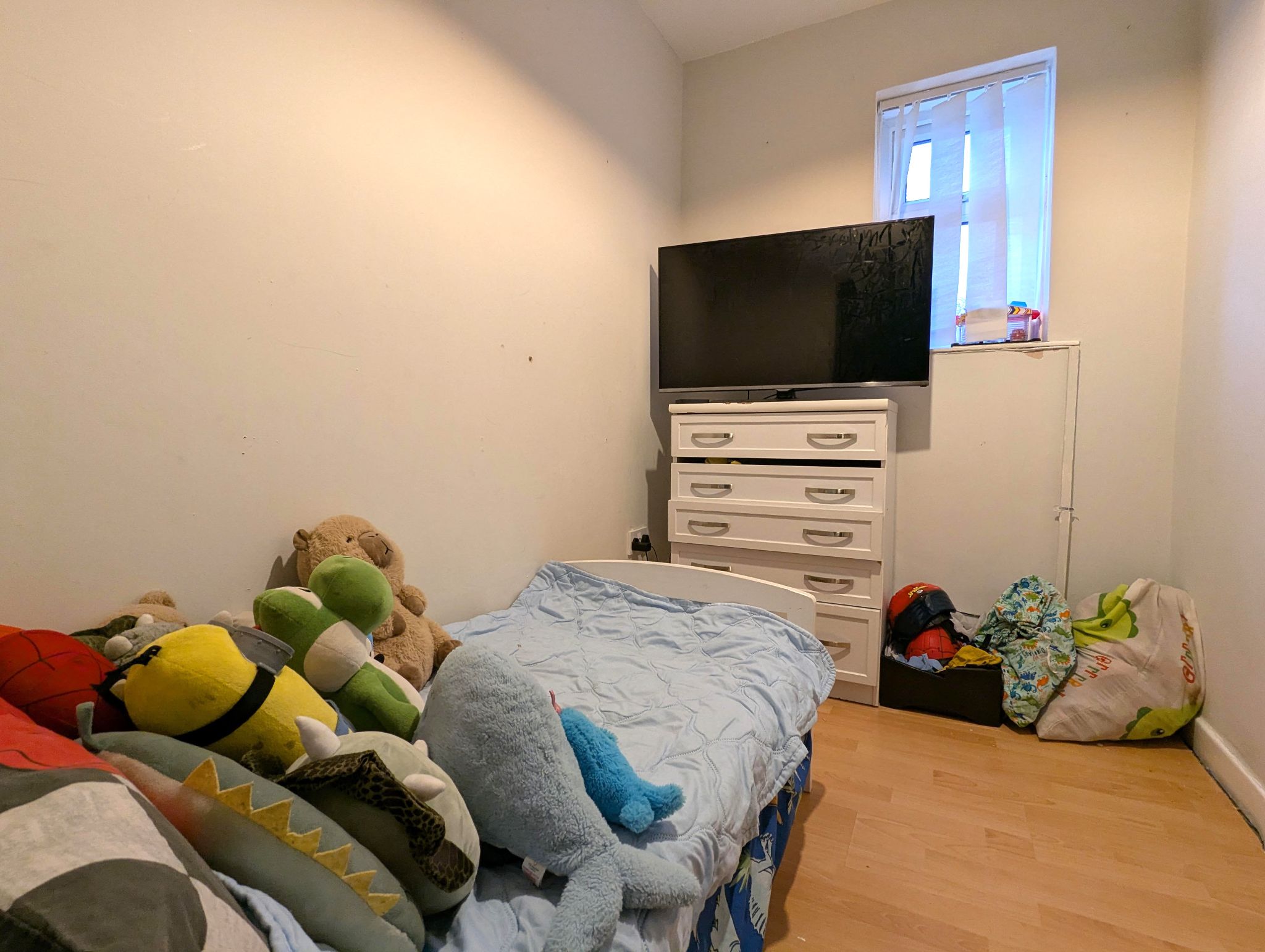 Bedroom 3 - 2.40m x 1.64m - featuring double glazed window to the rear, radiator, pendant light fitting and laminate flooring.