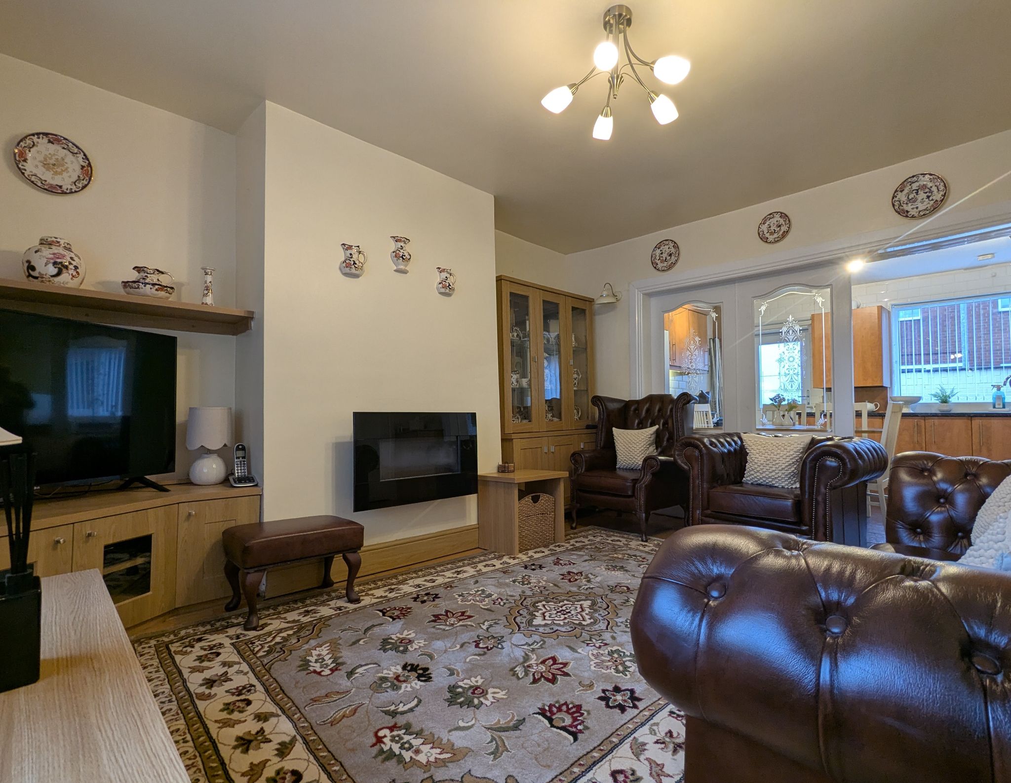 Lounge - 14'3 x 11'7 (4.35m x 3.56m) - Spacious lounge with wood flooring, front-facing UPVC double glazed window, built-in cupboard, wall mounted radiator and wall mounted gas fire. Fixed French doors and open access for the kitchen towards the rear.