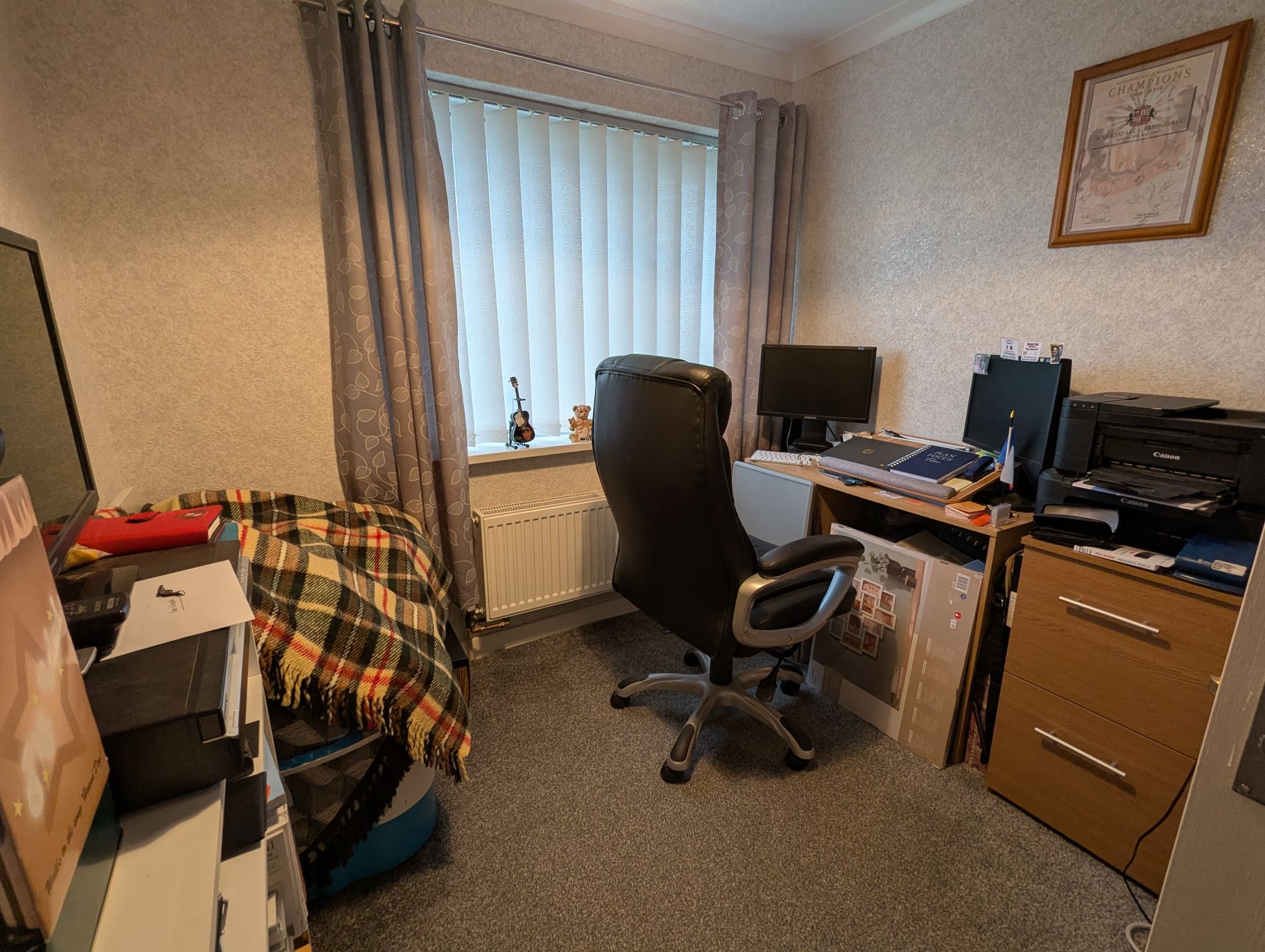 Bedroom Three - 8'8 x 7'9 (2.68m x 2.40m) - Carpeted bedroom currently used an office. Front-facing UPVC double glazed window and wall mounted radiator.