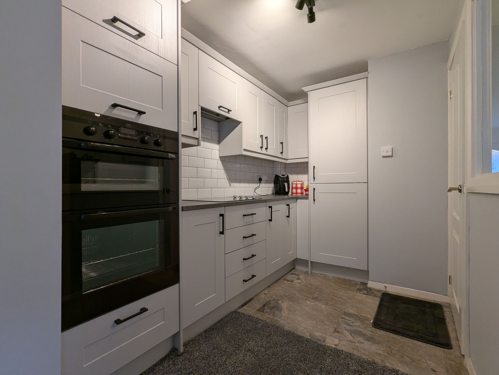 Kitchen - 12'7 x 6' (3.89m x 1.85m) - Tiled flooring throughout with access to a modernised and stylish range of base and wall fitted units, work surfaces and tiled splashback. Integrated appliances include a twin electric oven and separate gas hob with an overhead extractor. Space for under the counter freestanding fridge and freezer, washing machine and dishwasher (the vendor is offering to include the washing machine and dishwasher in with the sale of the property), stainless steel sink with mixer tap below a rear-facing double glazed window looking into the garden room, as well as a side-facing double glazed window and UPVC door for access to the garden room.