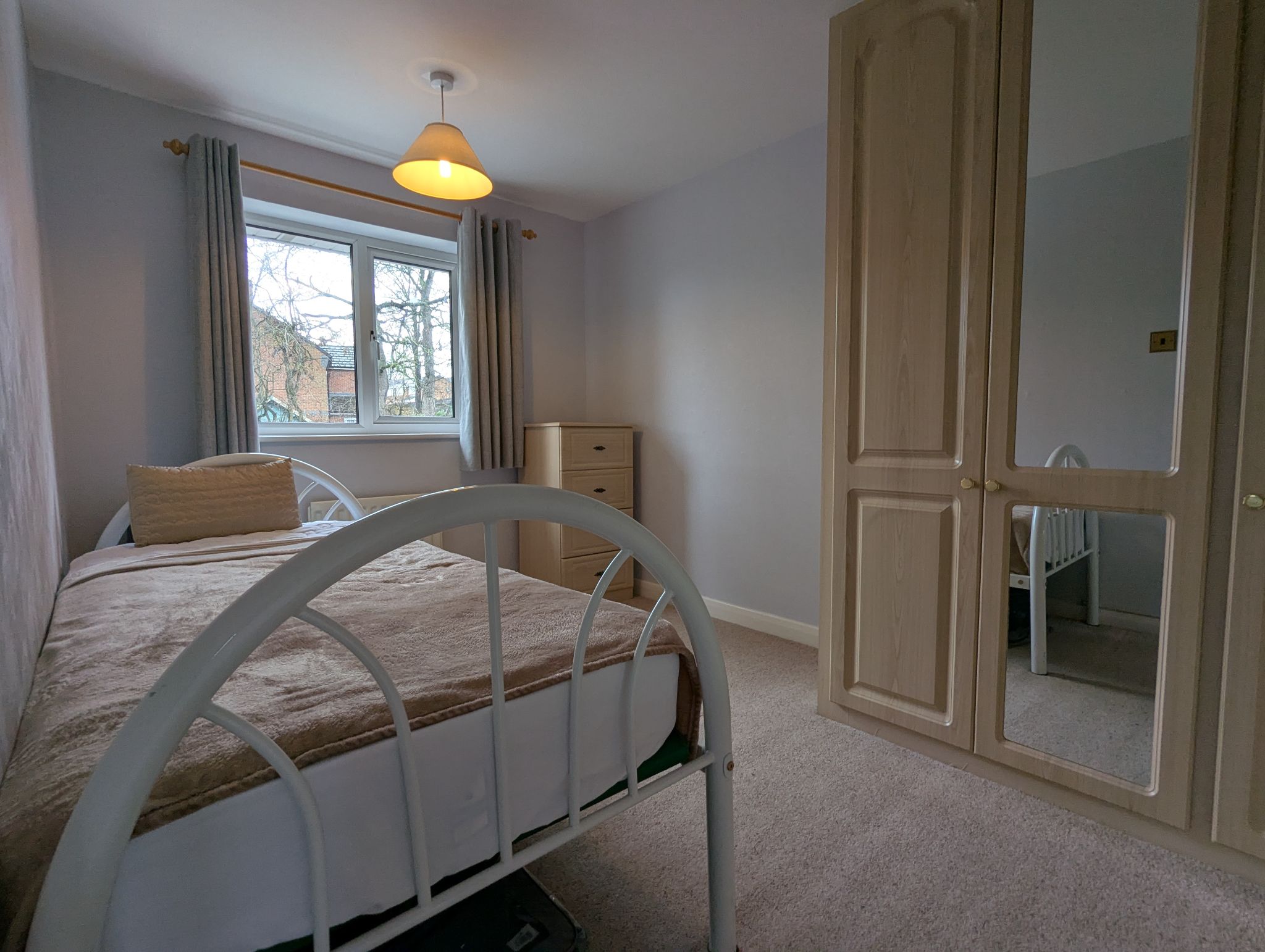 Bedroom Two - 13'1 x 7'8 (4.01m x 2.38m) - Carpeted bedroom with fitted wardrobes and units. Rear-facing double glazed window and wall mounted radiator.