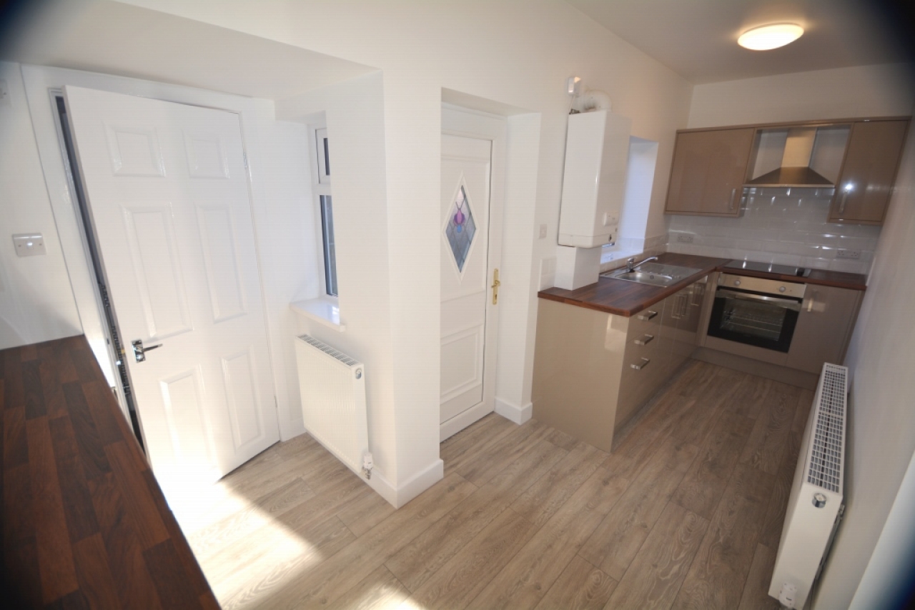 Internally, the layout offers an entrance vestibule with stairs to 1st floor, large lounge with wall-mounted fire, L-shaped kitchen with high gloss units, cooking facilities and breakfast bar and modern WC to the ground floor. To the 1st floor there is a generous landing off which lead 3 bedrooms and the brand new bathroom with modern white 3 piece suite with mains shower and part-tiled walls.
