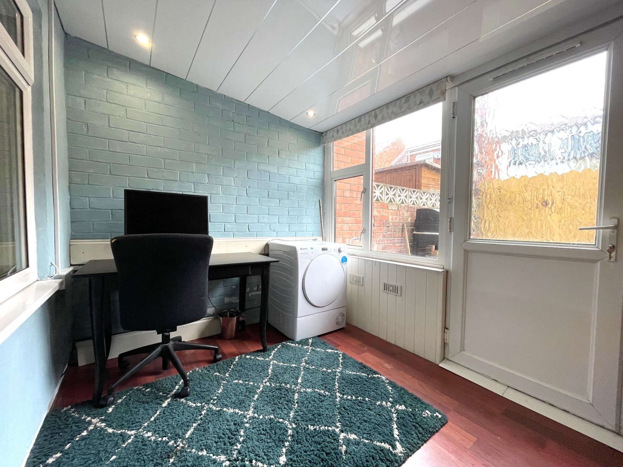 Study - 7'3 x 7'8 (2.24m x 2.40m) - An additional versatile space currently used as an office. Laminate flooring and rear-facing UPVC double glazed window and door leading to the rear yard.