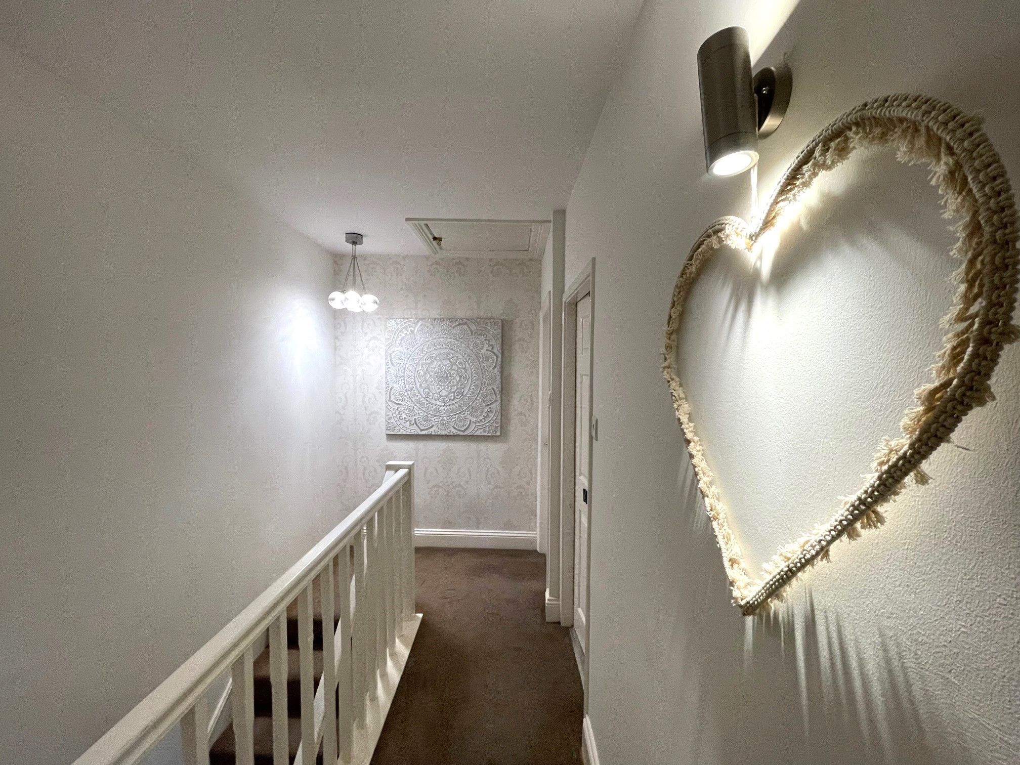 First Floor Landing - Long carpeted landing with access to 2 double bedrooms, a spacious bathroom, built-in cupboard and loft hatch.