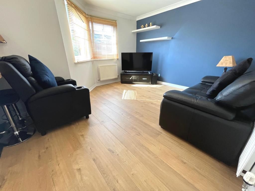 Lounge (open plan) - 3.74m x 4.02m - featuring double panel radiator, double glazed UPVC window with venetian blinds, coving, pendant light fitting, TV point & laminate flooring.