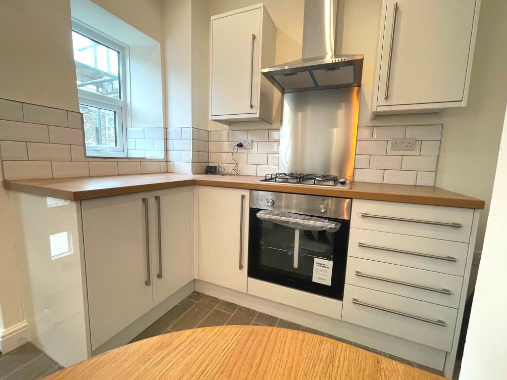 Kitchen - 4.84 x 1.83 - double glazed UPVC window to rear, door leading to rear yard, electric oven & gas hob, extractor hood, plumbing for washing machine, stainless steel one and a half bowl sink with drainer with mixer tap, tiled splash back, double panel radiator, spotlights & hanging light fittings, breakfast bar, white gloss units and tiled flooring.