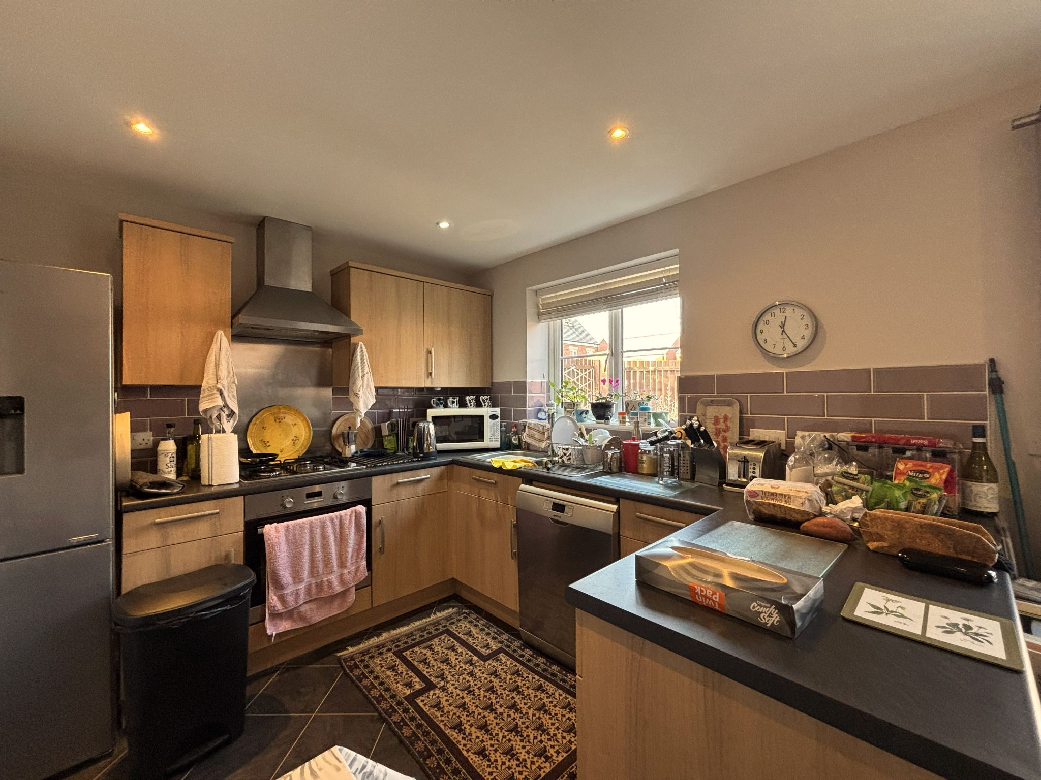 Kitchen/Diner 8'9 x 17'7 (2.71m x 5.39m) - Spacious kitchen/diner with matching vinyl flooring throughout, range of base and wall fitted units with contrasting work surfaces. Integrated electric oven and gas hob with overhead extractor. Spaces for a fridge/freezer and dishwasher. Stainless steel one-and-a-half sink with mixer tap below a rear-facing UPVC double glazed window. UPVC sliding patio door looking out onto the rear garden. Wall mounted radiator. Access to the utility.