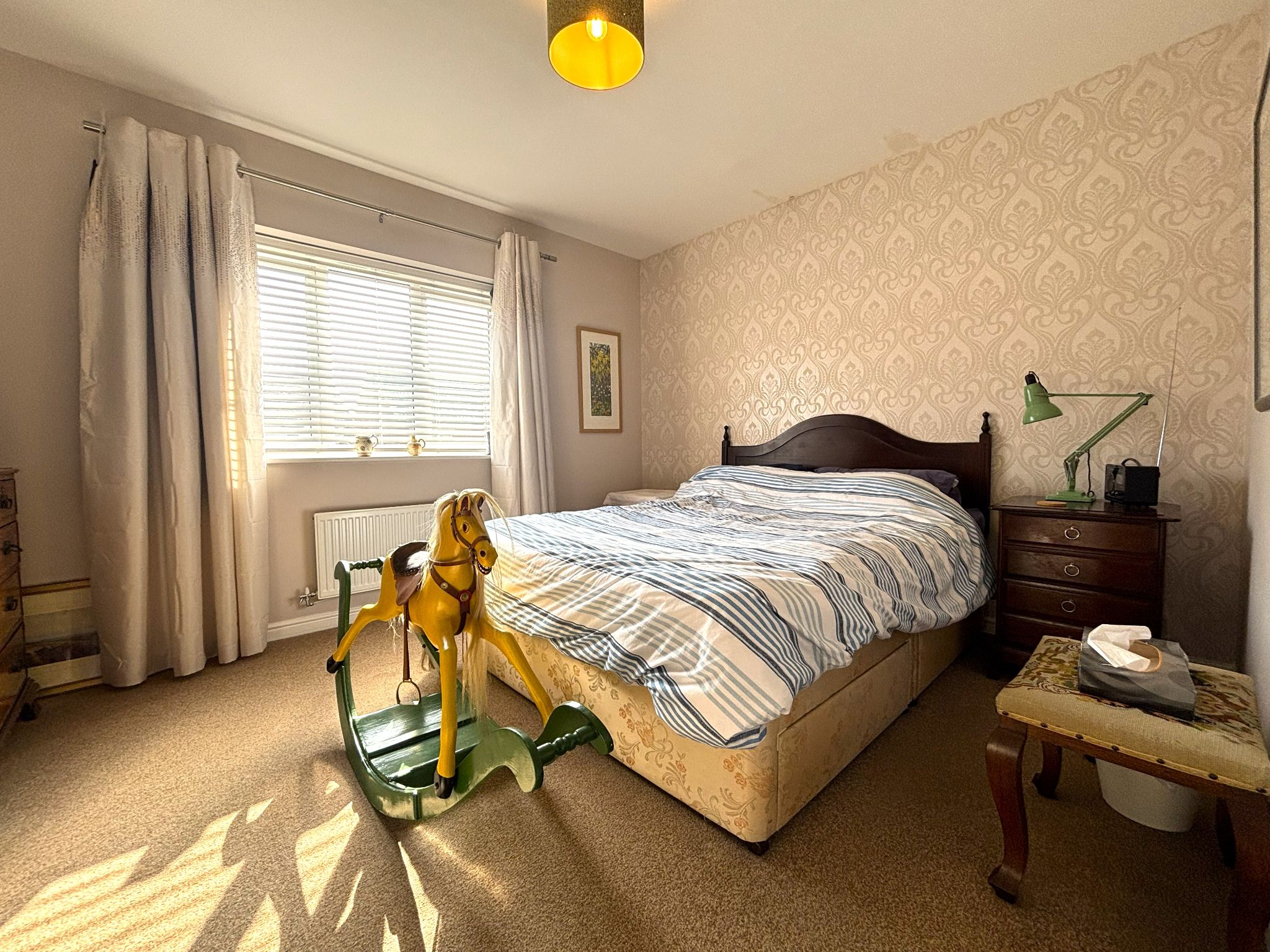 Lounge 11'9 x 12'4 (3.62m x 3.77m) - Spacious carpeted lounge with a large front-facing UPVC double glazed window and wall mounted radiator, fitted carpets, pendant light fitting.