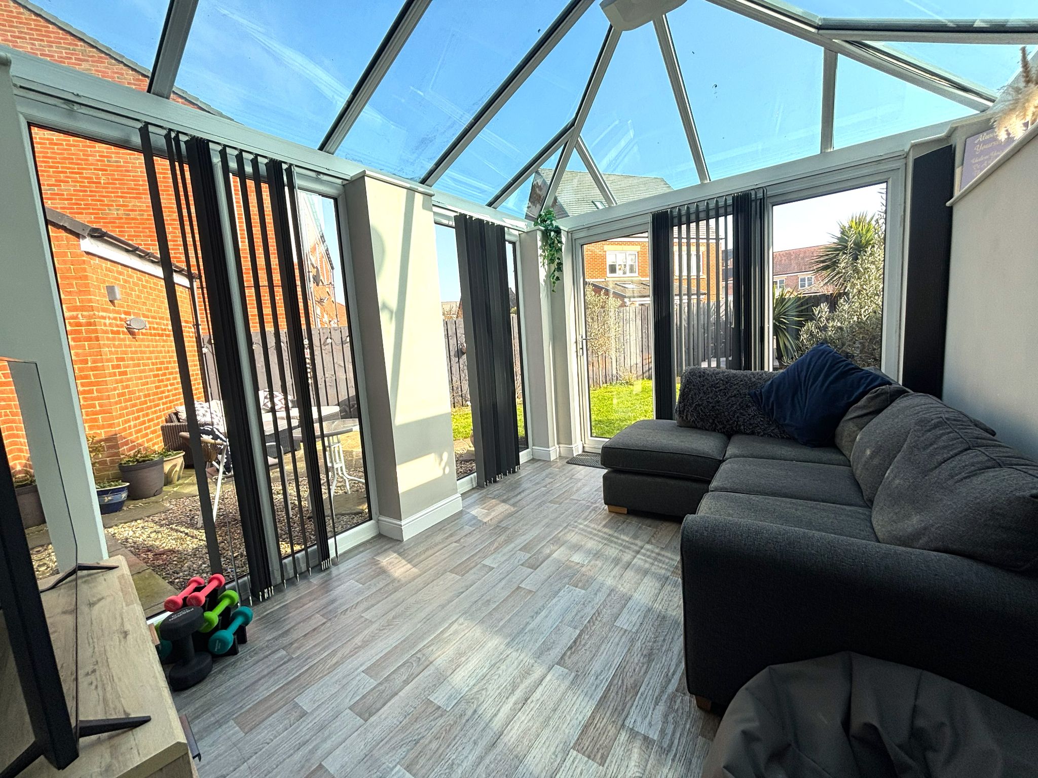 Sun Room 12'10 x 8'5 (3.9m x 2.57m) - Bi-fold doors to the rear of the sun room, uPVC double glazed windows to all walls, modern vertical electric radiator.