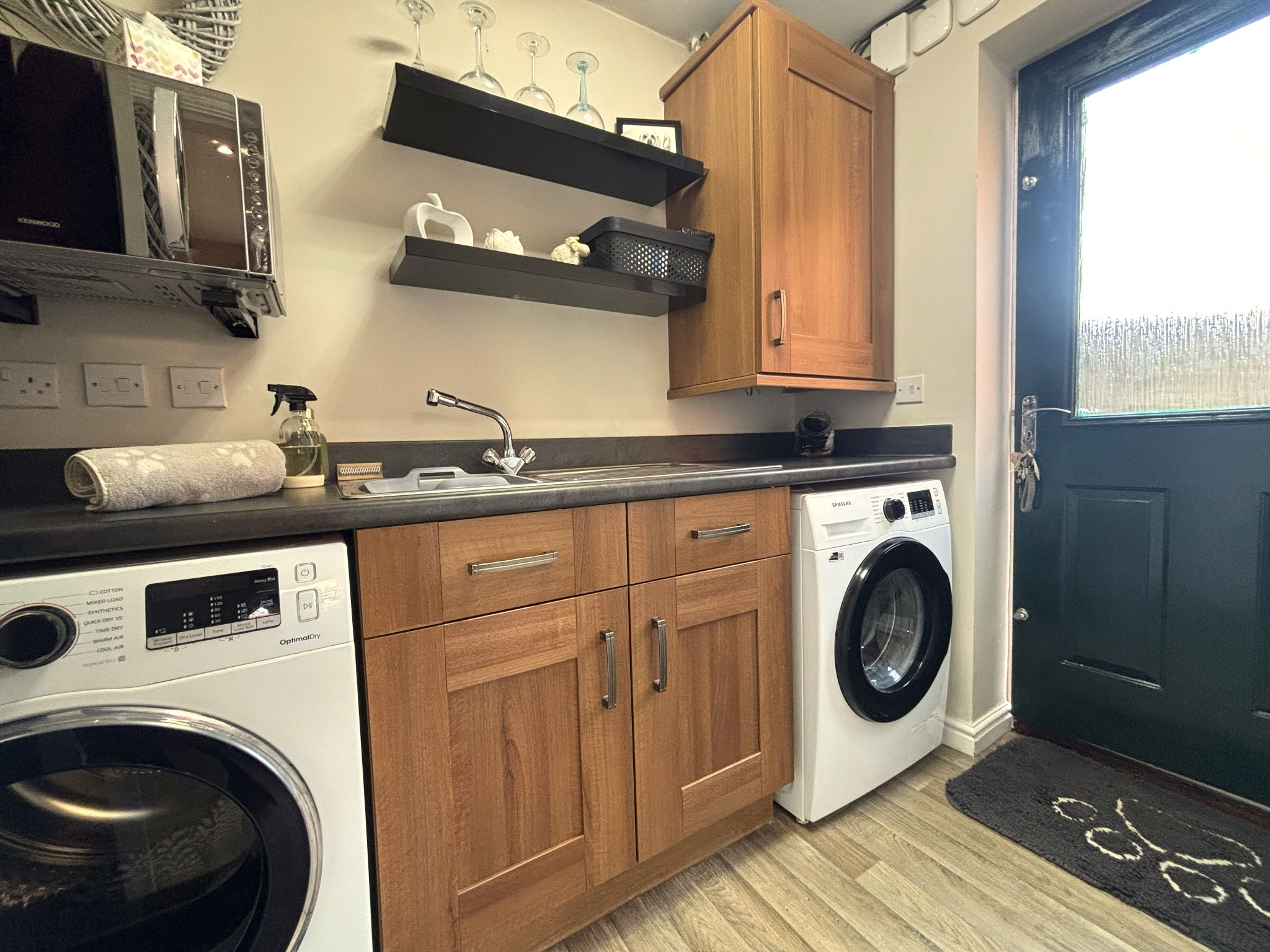 Utility room 5'1 x 7'8 (1.54m x 2.35) - Baxi boiler, heated towel rail, pendant light fitting, stainless steel single tap with mixer taps, space for tumble drier, solid door to the rear garden.
