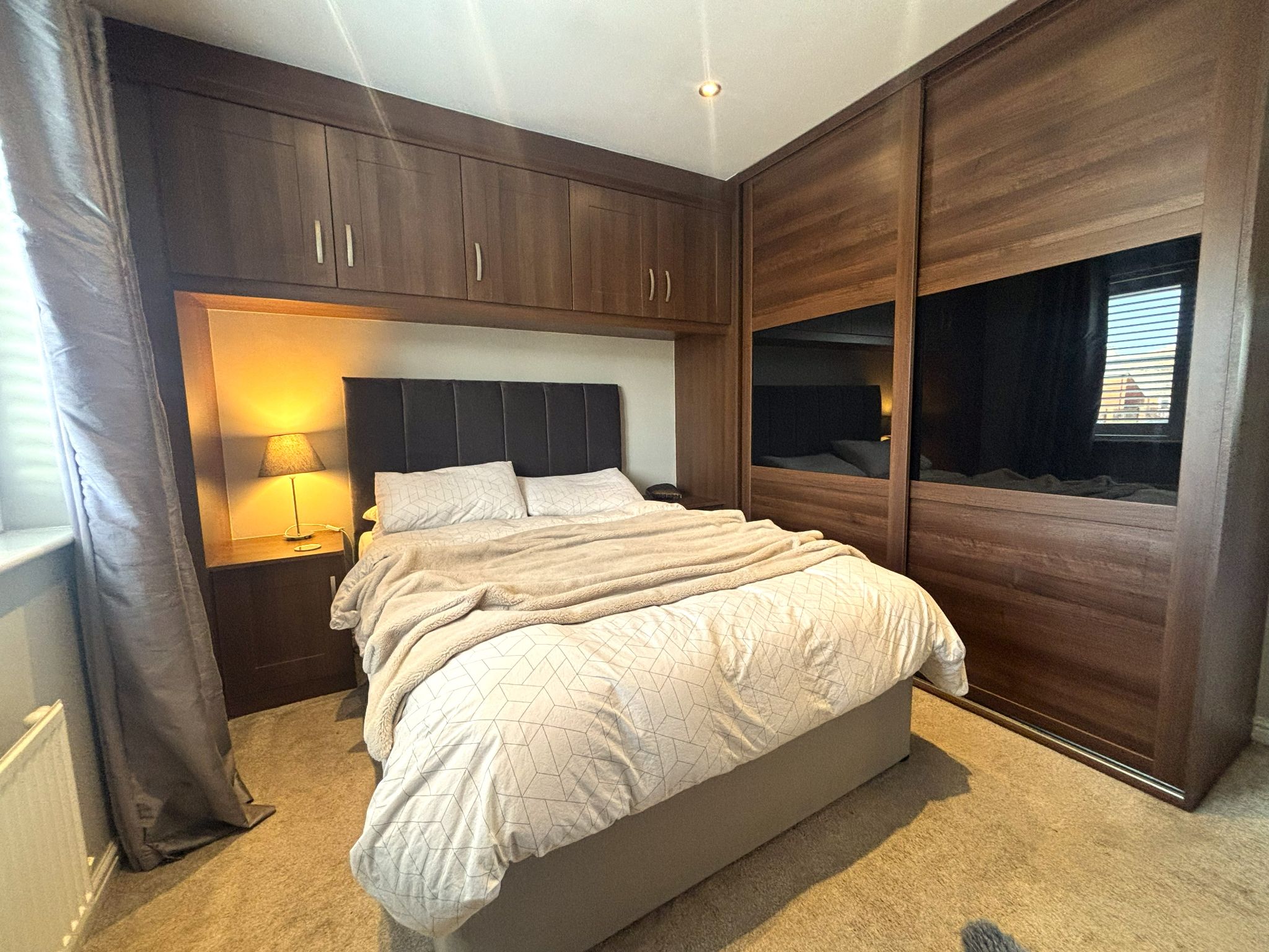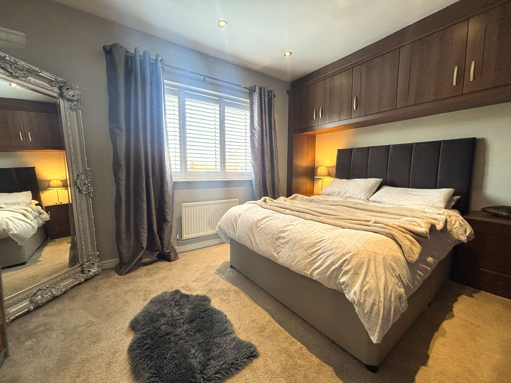 Master Bedroom 10'6 x 12'8 (3.19m x 3.86m) uPVC double glazed window to the front with plantation shutters, fitted wardrobes with plenty of storage, spotlights, fitted carpets.