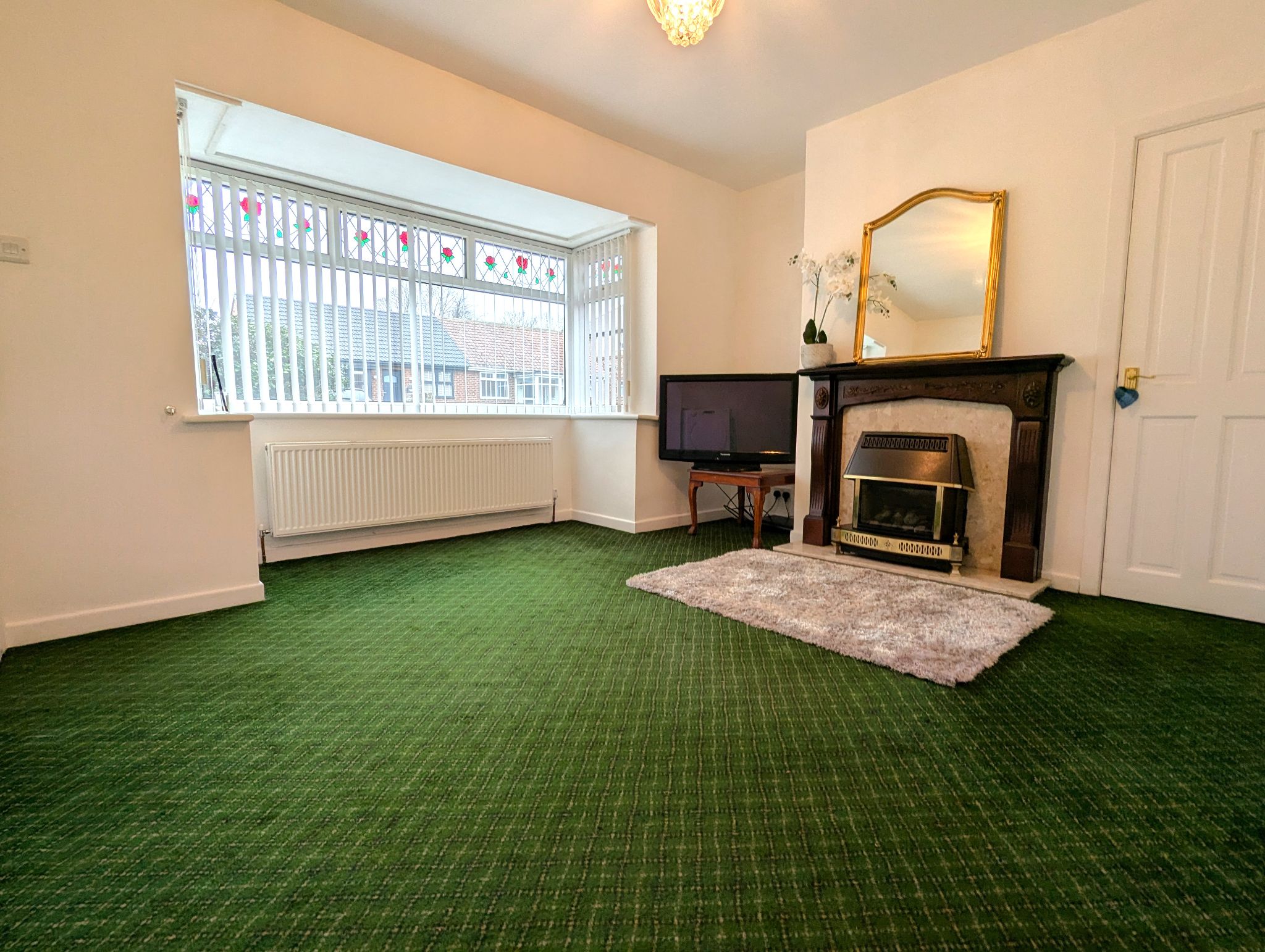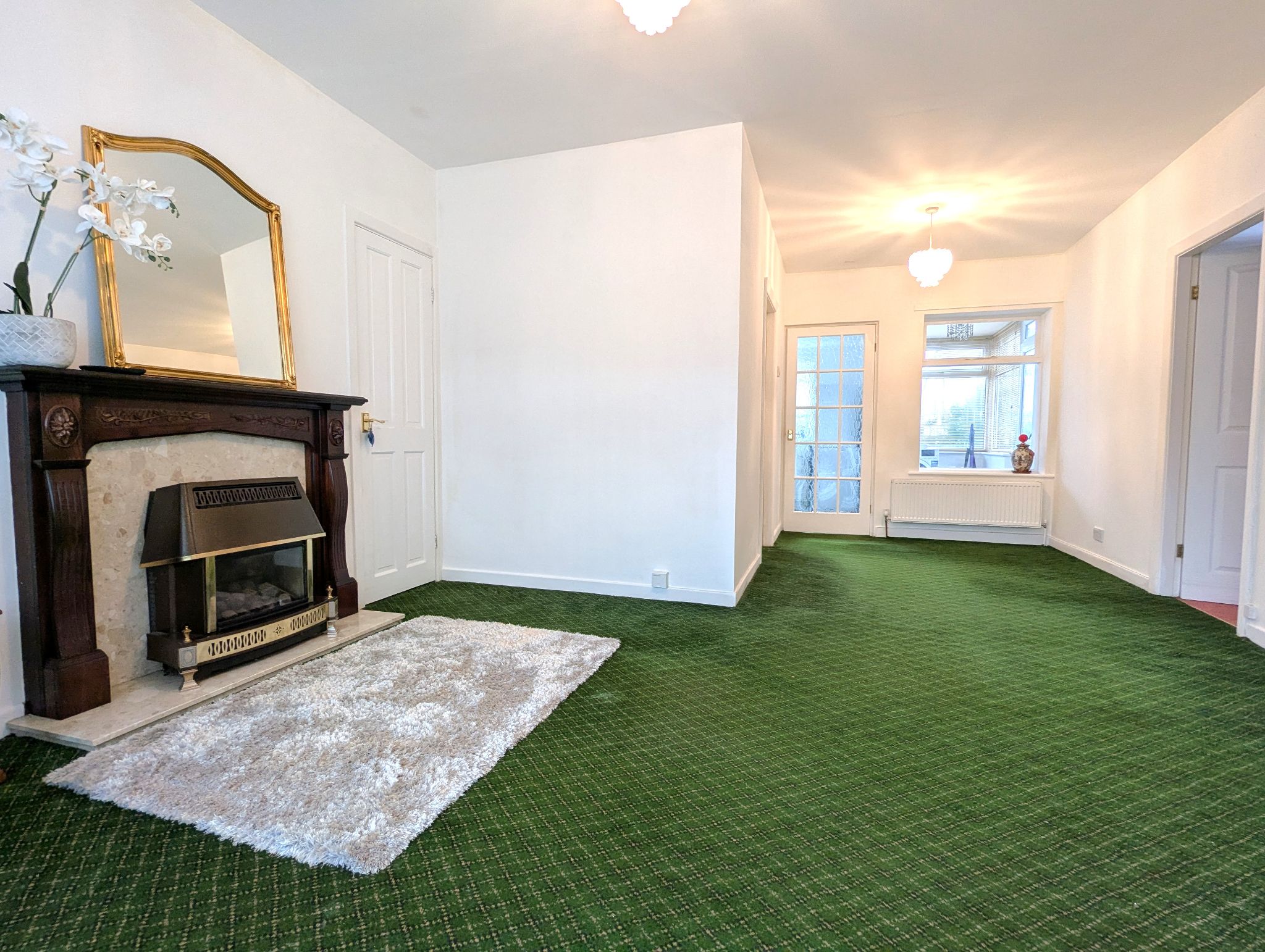 Lounge - 12'3 x 13'3 (3.76m x 4.06m) - Spacious and recently decorated, carpeted lounge with an open plan aspect with the dining area and large front-facing UPVC double glazed bay window. Gas fireplace as centrepiece, wall mounted radiator and built-in cupboard with a Baxi combination boiler.