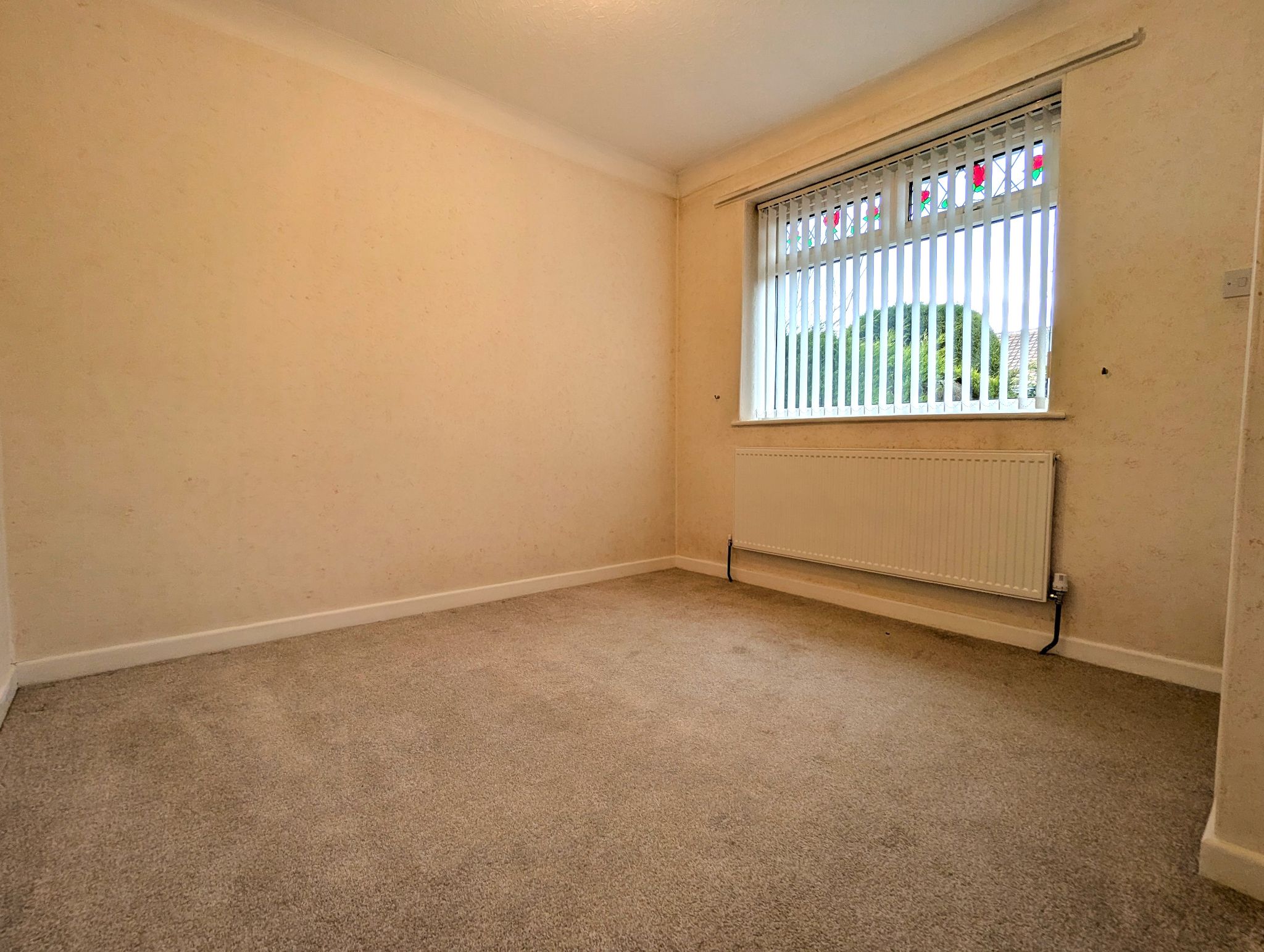 Bedroom Two - 8'9 x 10'6 (2.74m x 3.24m) - Carpeted bedroom with a rear-facing UPVC double glazed window and wall mounted radiator.