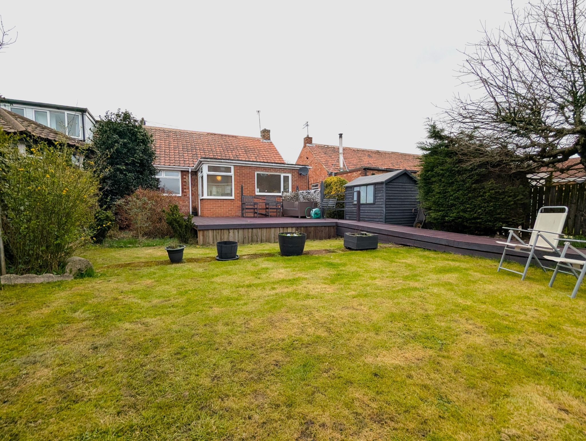 Exterior - Well-presented garden to the front with access to a shared drive, disability access ramp to the front door and gated side access to the rear. A spacious, west-facing and well-presented garden to the rear with a decked area connecting to a summer house towards the far side and garden shed.