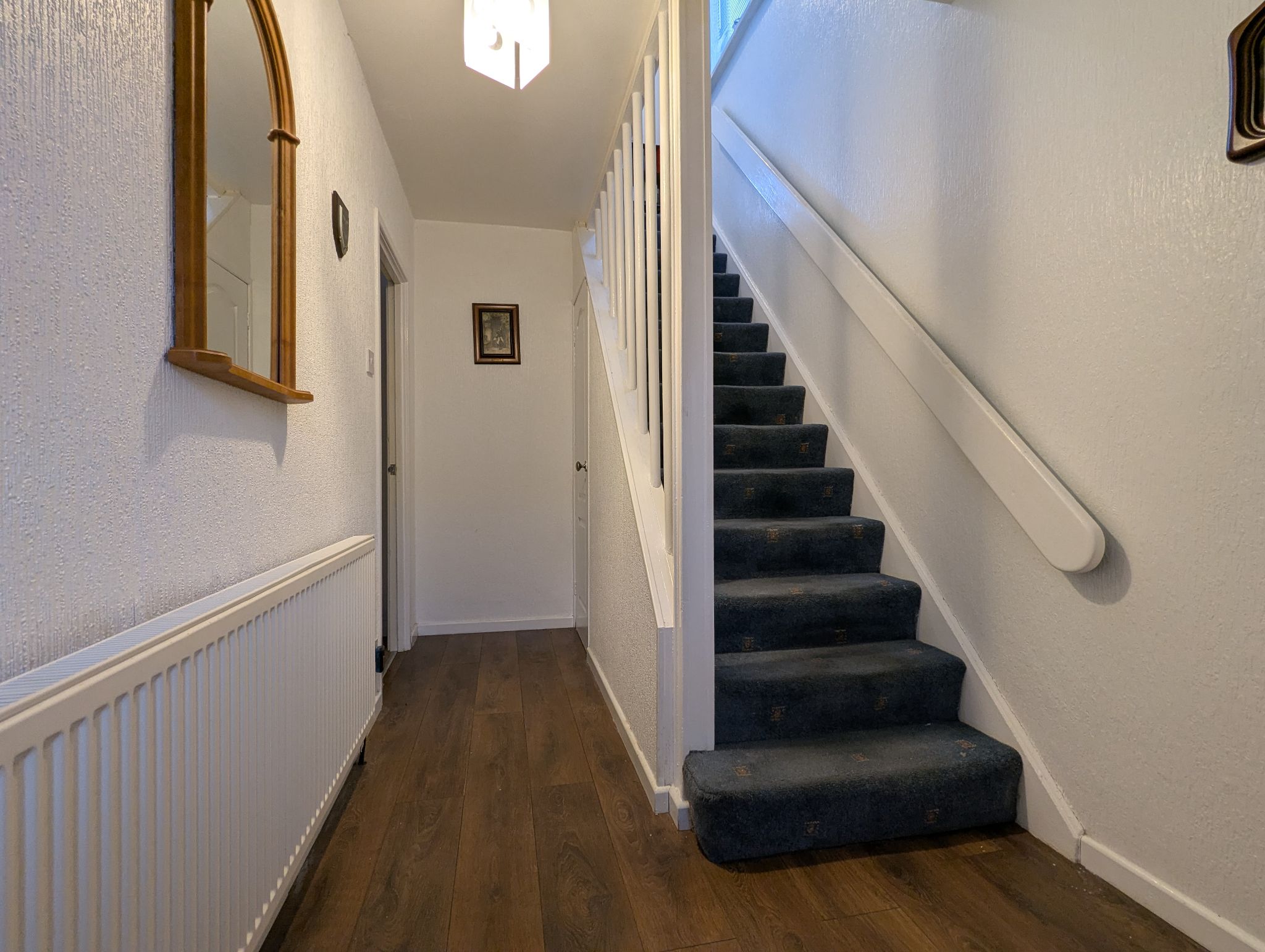 Entrance Hall - Enter via a UPVC front door into an entrance hall with laminate flooring, wall mounted radiator, 2 built-in cupboards along with access to a Lounge/diner and carpeted staircase to the first floor.