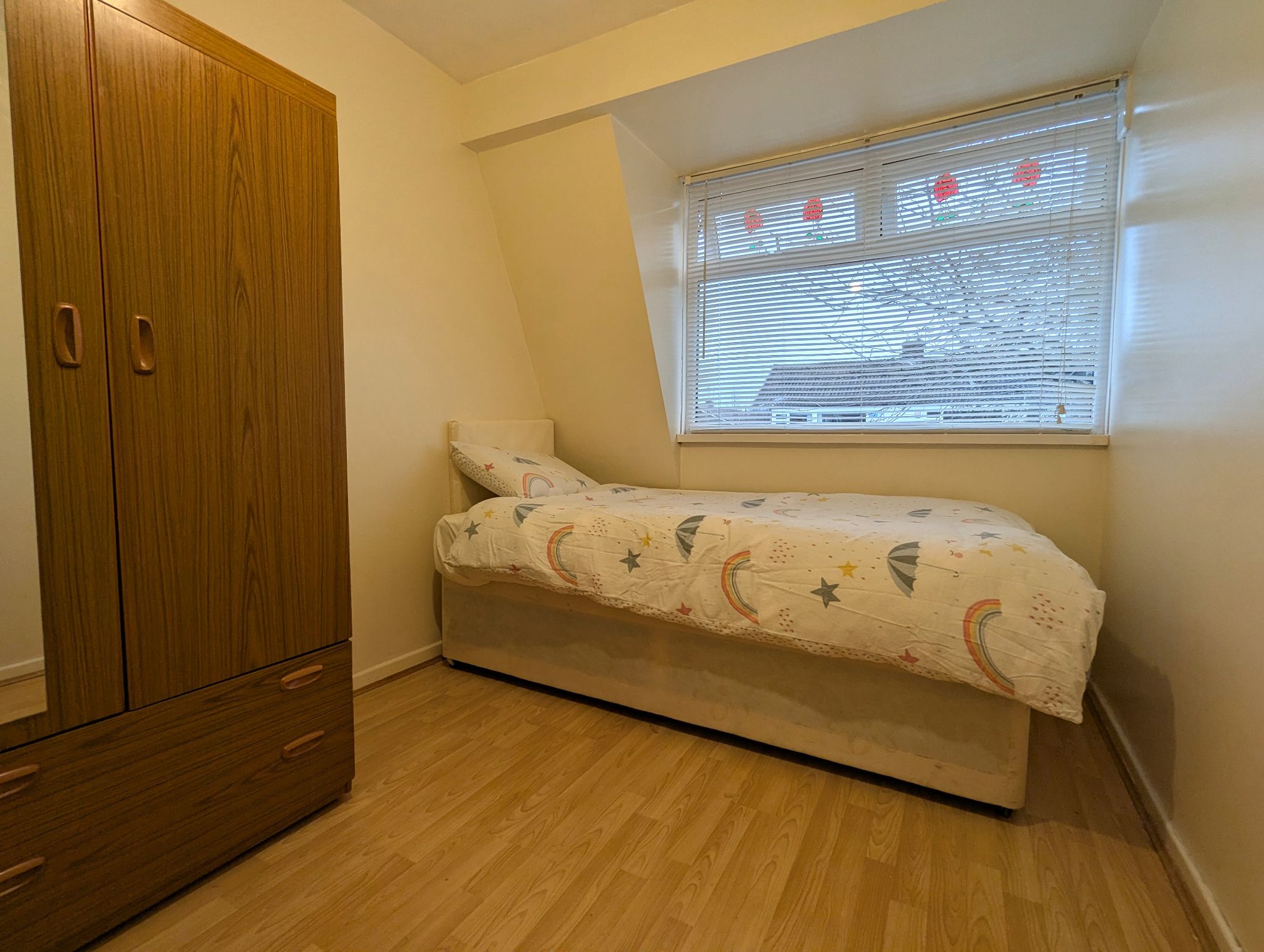 Bedroom Three - 11' x 7'4 (3.35m x 2.25m) - A generous sized third bedroom with laminate flooring, a front-facing UPVC double glazed window, built-in cupboard and wall mounted radiator.