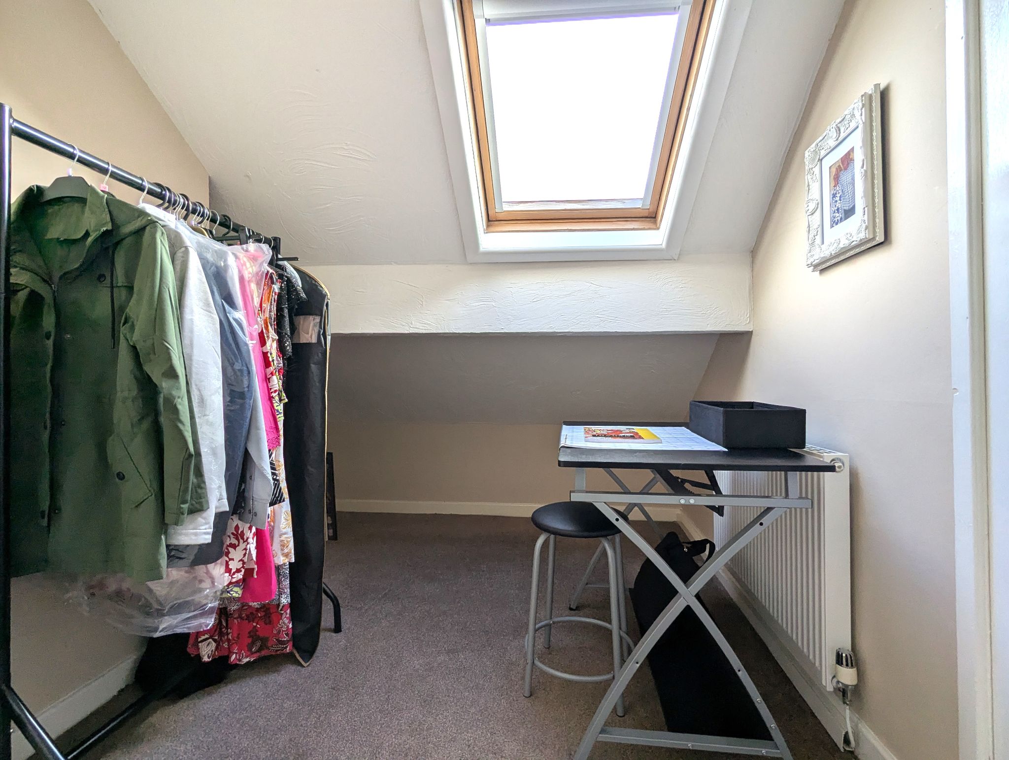 Converted Loft Room Two - 11'3 x 6'4 (3.45m x 1.96m) - Carpeted with a front-facing Velux skylight, built-in cupboard accommodating for a Valiant combination boiler and separate built-in cupboard for storage in the eaves.