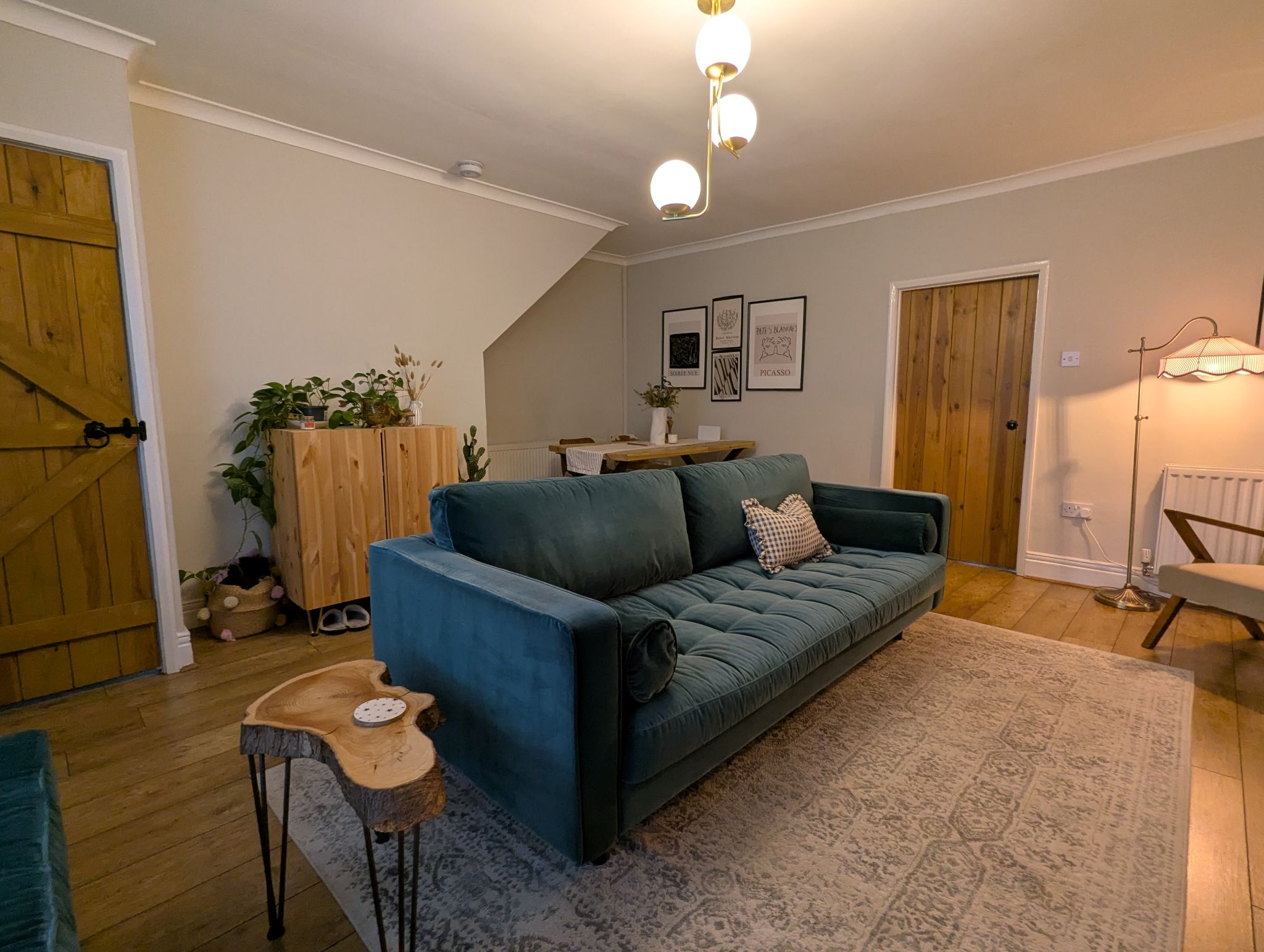 As you enter from the hallway you are greeted with a spacious and beautifully decorated lounge able to accommodate a six seater dining table as well as a sofa and a log burner as the centrepiece. Go through to the rear passage to be greeted with a stunning and characterful kitchen and bathroom, holding true to the property's heritage. The first floor is home to 2 thoughtfully decorated bedrooms while the master bedroom boasts a decorative vintage fireplace.