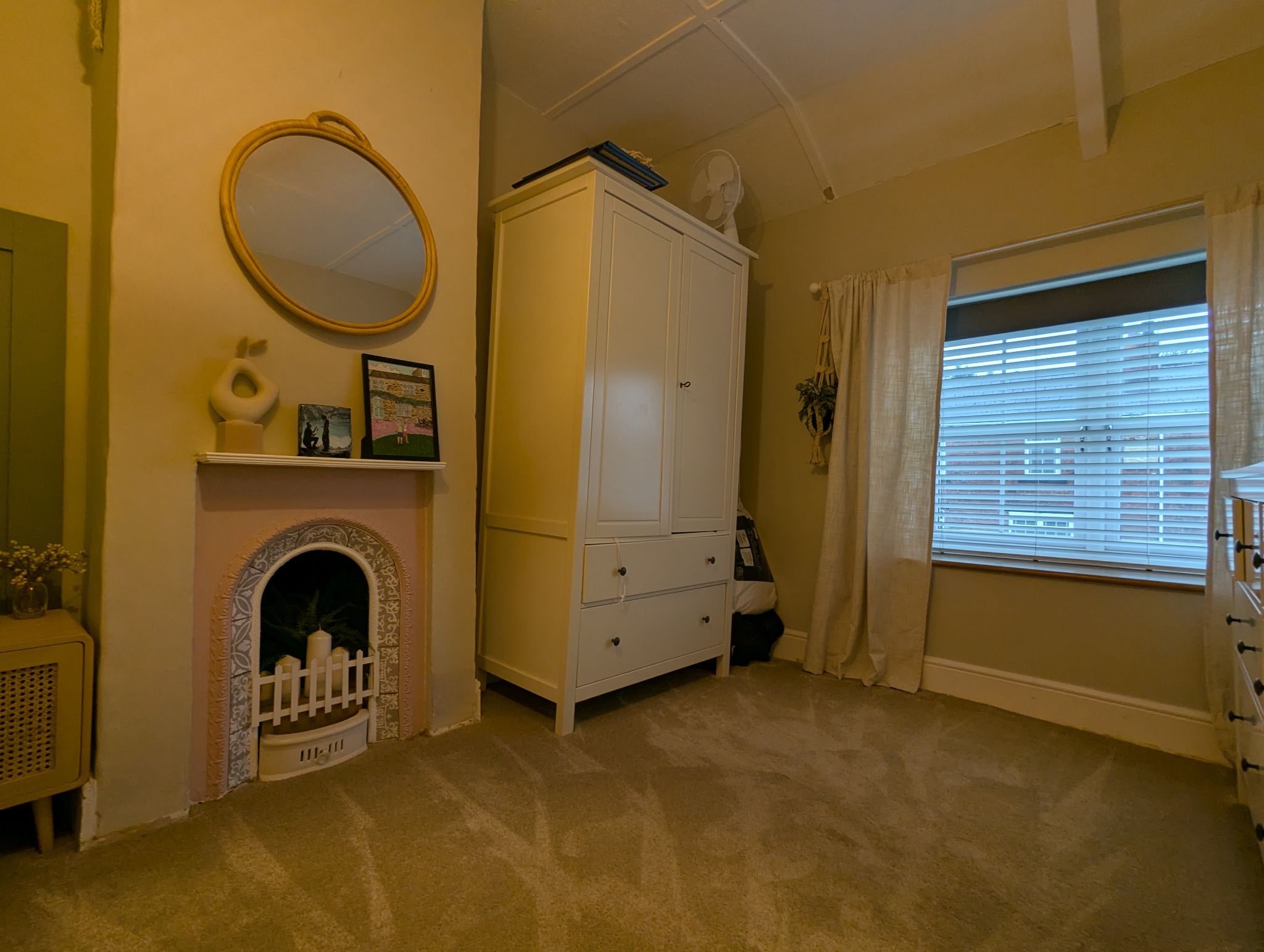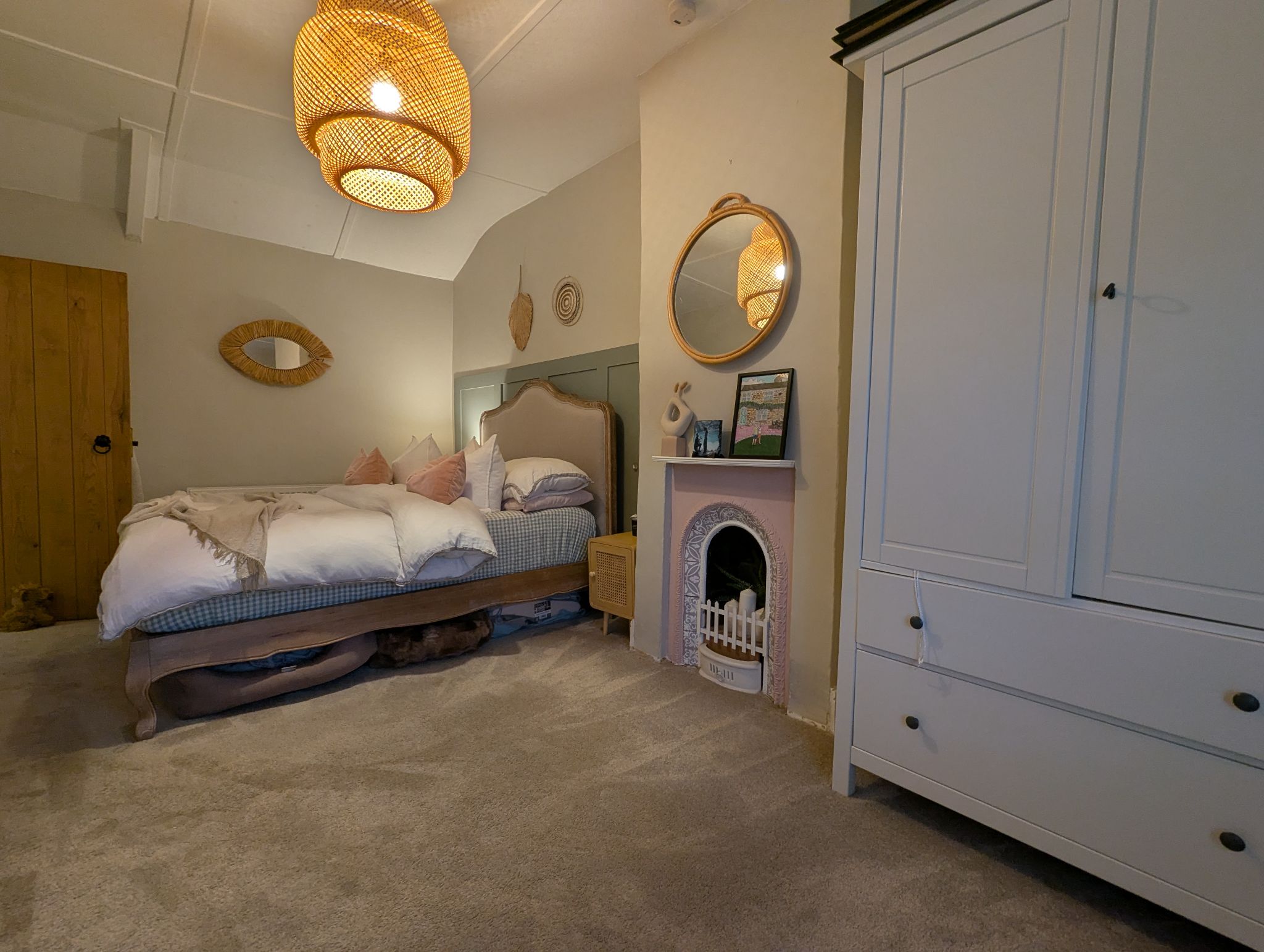 Bedroom One - 16'7 x 9'1 (5.09m x 2.77m) - Spacious and beautifully decorated and carpeted bedroom with a front-facing UPVC double glazed window, wall mounted radiator and features an original vintage decorative fireplace.