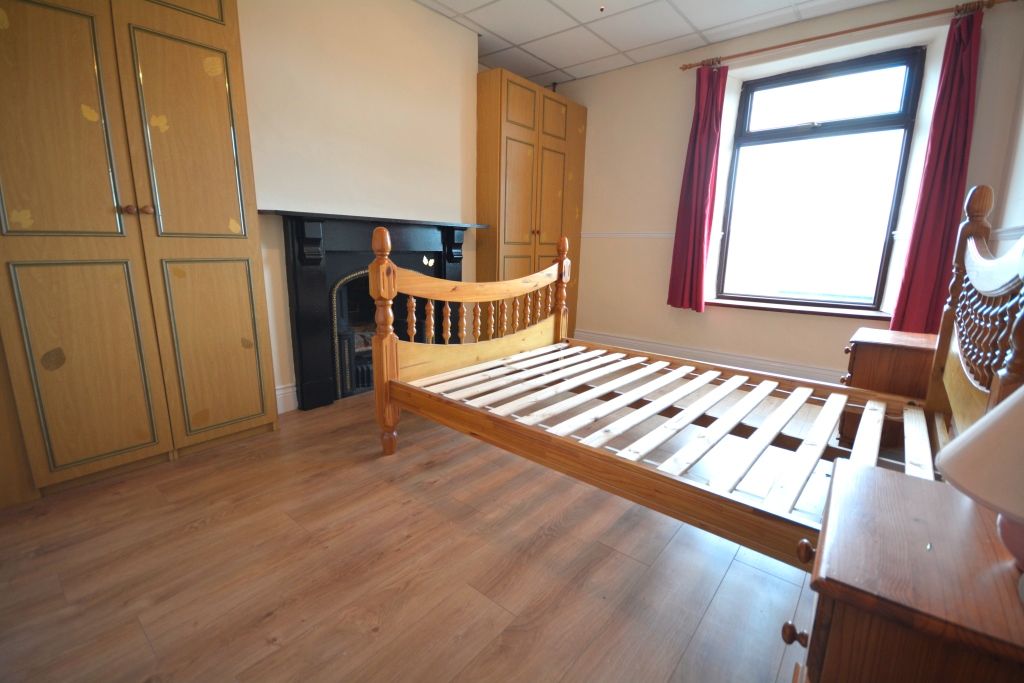 Bedroom 1 (4.23 x 3.09) - featuring double glazed UPVC window to front with curtains, double panel radiator, two fitted wardrobes, pendant light fitting, ornamental fireplace and laminate flooring.