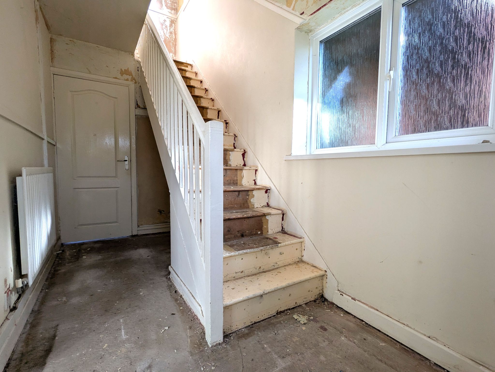 Hallway - Enter via composite front door into a hallway with access to a lounge, kitchen and staircase to the first floor. Side-facing UPVC double glazed window and wall mounted radiator.