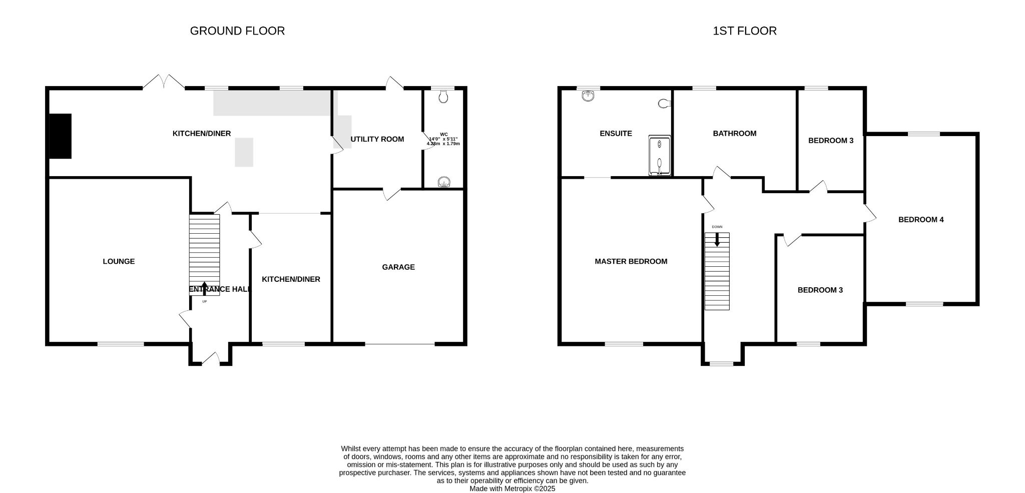 To the 1st floor an extend landing leads to all 4 bedrooms and the modern family bathroom. Bedroom 1 is a great size measuring 17'6 x 13'2 which allows space for larger style beds along with fitted wardrobes. A superb en-suite shower room boasts a beautiful suite consist of a walk-in shower enclosure with twin heads fed via a combination boiler, WC and hand wash unit. The walls are mainly tiled and covered with slate brick tiling. 3 further double bedrooms are provided along with a stunning family bathroom with twin stone wash basins, bath, separate shower enclosure and WC.