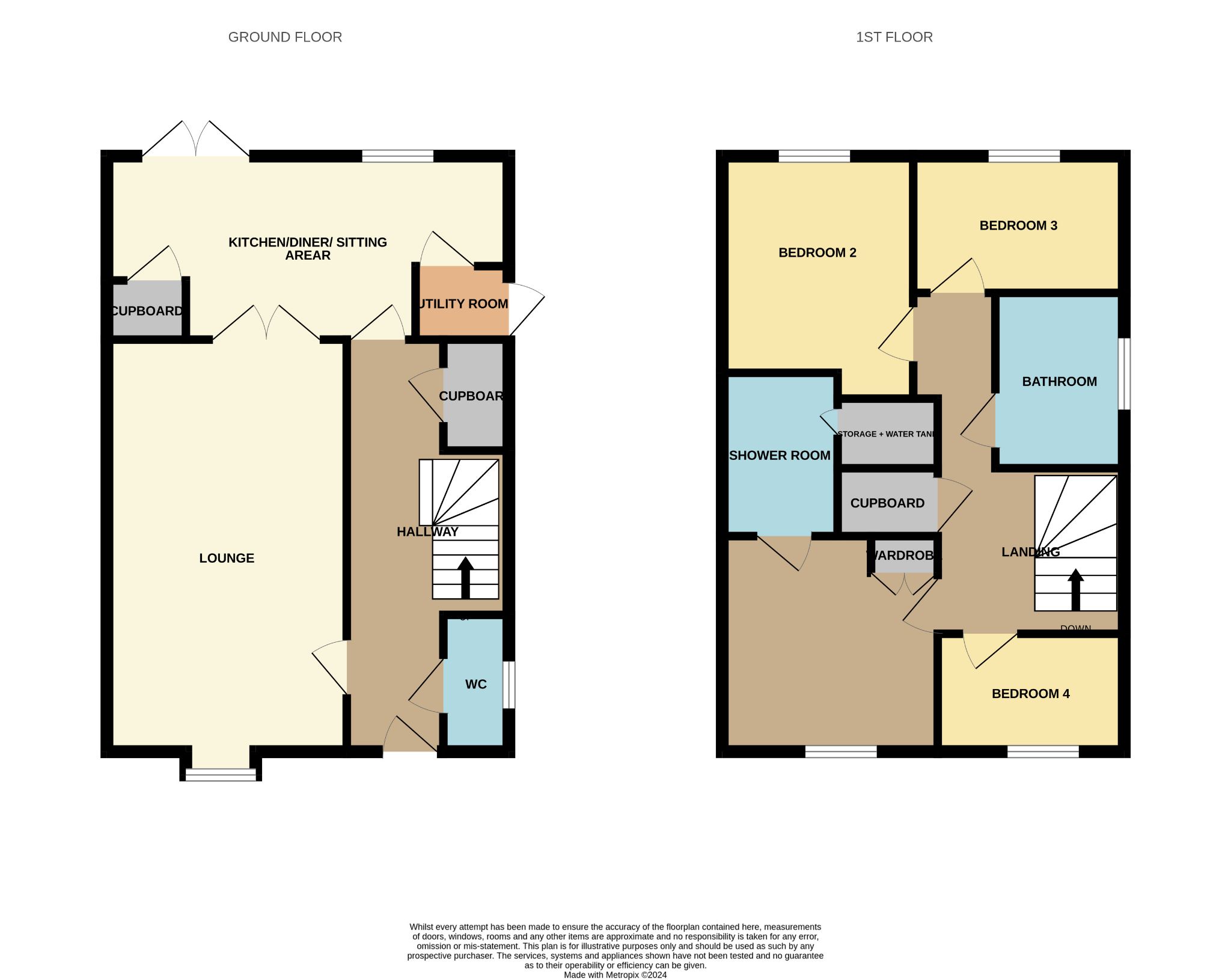 To the 1st floor, the landing area flows to all 4 bedrooms and the modern family bathroom. Bedroom 1 is a generous size and benefits from the addition of fitted wardrobes along with a full en-suite shower room with mains supplied walk in shower enclosure. 3 further good sized bedrooms are all served by the family bathroom which provides both bath and shower facilities.